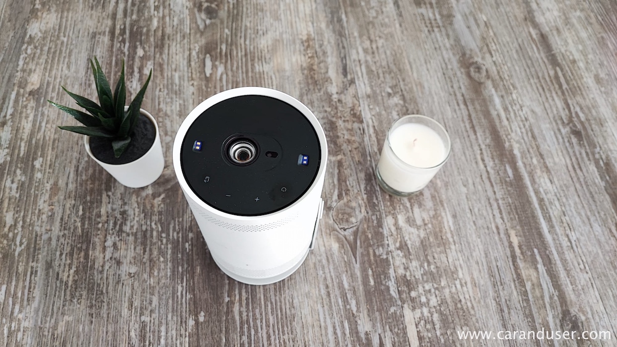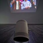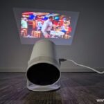 Kljub velikosti je presenečenje naprave 360° zvočnik, s 5W moči, ki svojo nalogo neverjetno dobro opravi. Brez težav boste uživali v svoji najljubši seriji ali filmu, ob predpostavki, da v prostoru ne bo drugih ambientalnih ali zunanjih zvokov. Zvočnik je dober, ne zmore pa ustvariti čudežev. Projektor je na kovinskem stojalu, ki mu omogoča 180° obračanje in nastavitev želenega kota, čeprav ga pri kotu manjšem od 45° teža projektorja sili v vodoraven položaj in ne zadrži nastavljene pozicije, kar je pri premium produktu s prav tako ceno presenetljivo.