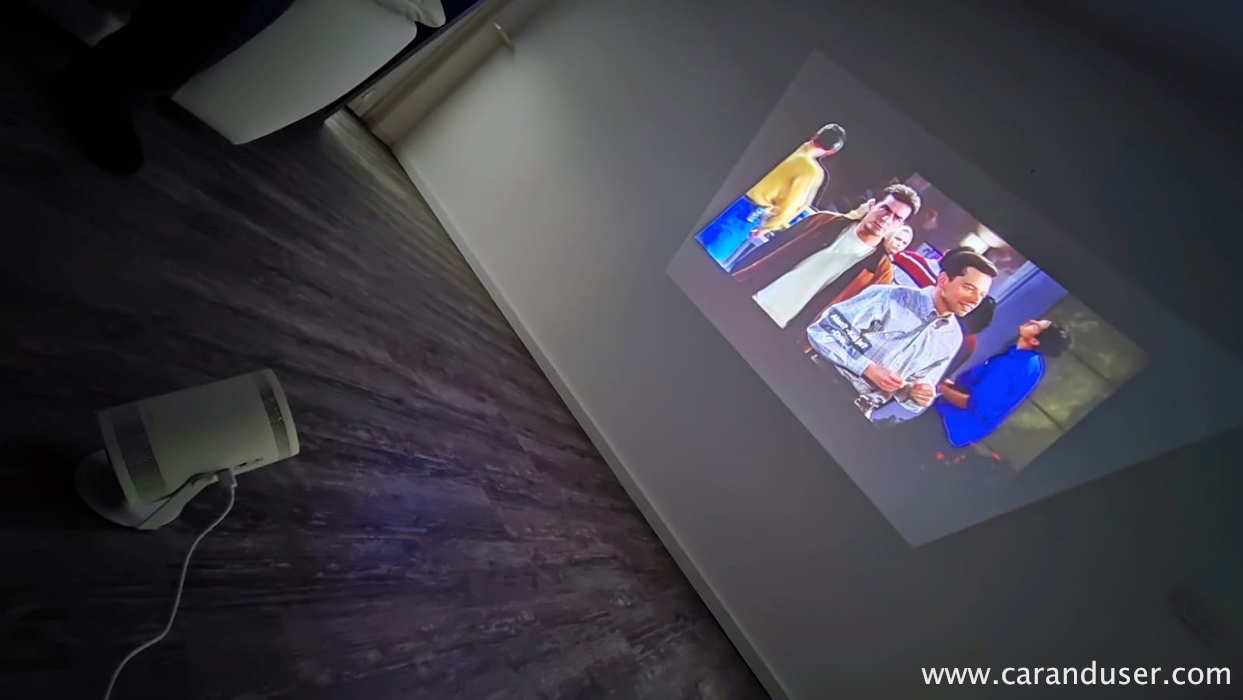 Sama uporaba projektorja je sila enostavna. Potrebuje vir napajanja preko USB-C kabla, ki je lahko tudi prenosna baterija s 50W izhodne moči ali primeren napajalnik (je priložen). Za prenos slike se lahko uporabi Micro HDMI vhod (adapter ni priložen) ali kar brezžična povezava. Vzpostavitev povezave je izjemno enostavna, poleg tega vas projektor, ko ne dobi slike preko HDMI, redno sprašuje (v primeru, da tega ne izklopite), če želite videti navodila za vzpostavitev brezžične povezave.