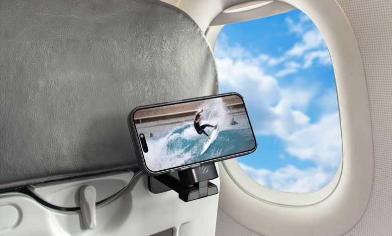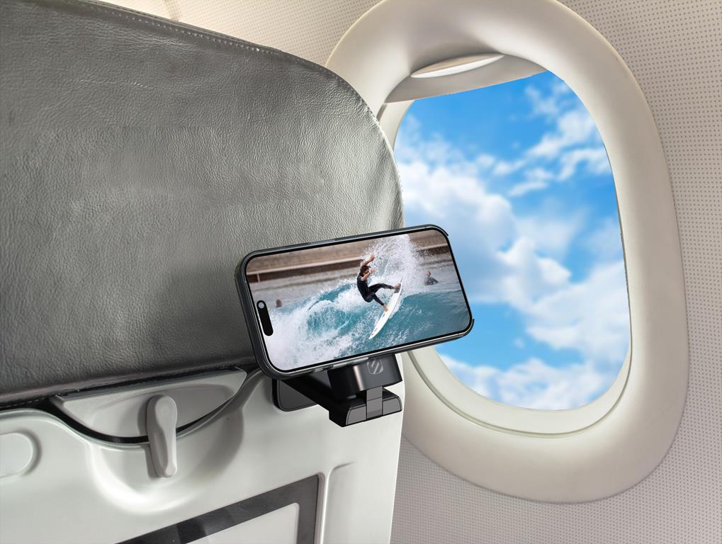 Ta zložljivi nosilec za telefon, ki je nastavljiv in lahek, je popoln za potovanja, vendar je tudi neprecenljiv dodatek doma ali v pisarni. Stoji na mizi ali pa se lahko pritrdi na pladenj letalske mize, na fitnes opremo ali rob mize.