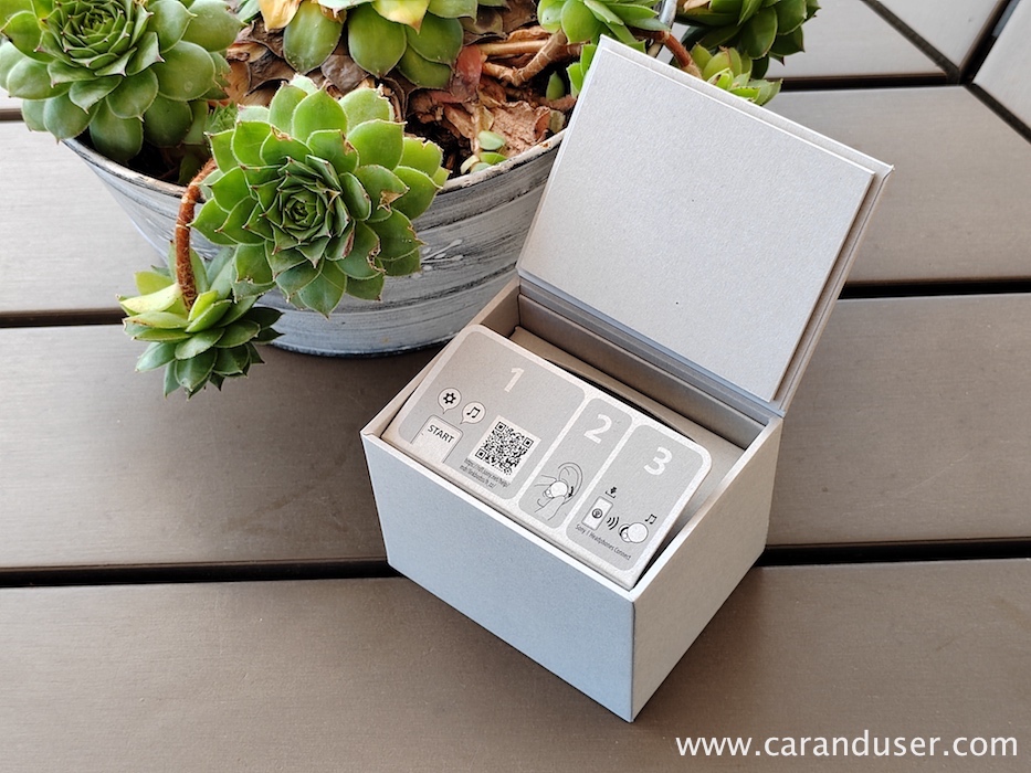 Če vas zunanjost ni prepričala, mnogo adutov v rokavu hrani vsebina. V kompaktnem etuiju z merami 42,8 x 60 x 27,6 mm in mase borih 35 g se nahajata dve drobceni slušalki, ki jih uporabnik komajda čuti na dlani. Malce več kot 4 g ”vaga” posamezna slušalka in kar preseneča je tehnologija, ki je zapakirana v takšno majceno reč. Prednost majhnosti in mase slušalke so nemudoma jasne, ko se le-te vstavijo v ušesno votlino, kjer do izraza pride še njihova ergonomska zasnova, katera bazira na podlagi obsežnih podatkov ”oblike ušes uporabnikov” vse od uvedbe prvih ušesnih slušalk na svetu leta 1982.