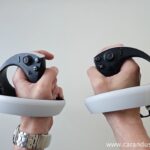 Spajanje s Playstationom 5 je sila preprosto. Kabel priklopite v USB-C režo nekaj klikov in že ste pripravljeni na izzive. Z „dvojko“ sta prišla tudi dva kontrolerja, ki sta na moč ergonomskih oblik, ponujata pa, poleg ustaljenih tipk, tudi tisto, ki jo upravljate s sredincem in je nekoliko skrita v samo držalo. Kontrolerja sta opremljena z dvema varnostnima vrvicama, ki si ju le dobro pričvrstite, saj bo mahanje pred ekranom ali zidovi kaj hitro poskrbelo za „znane leteče predmete“.