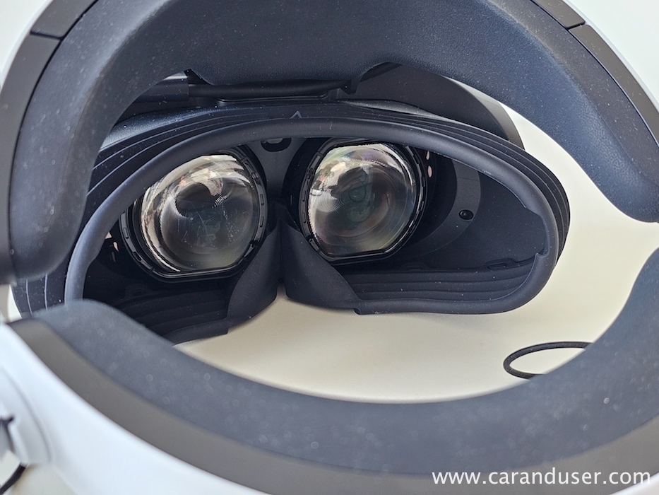 VR2 tehta 560 gromov in ga je sila enostavno nasaditi tako na velike buče, kot otroške glave. Znotraj briljirata dva 4K OLED zaslona, ki prikazujeta 2000×2040 točk, osvežujeta pa se s hitrostjo 120 Hz. Področje vidnega polja je odmerjeno s 110 stopinjami. Začetni postopek vas bo vodil skozi precej enostavne korake. Na sprednji strani so štiri kamere, ki vam označujejo prostor, hkrati pa določajo velikost igralnega polja (saj veste, večjo dnevno sobo kot boste imeli, večji bo prostor za skakanje). Za popolno nastavitev sta na voljo še dva gumba, in sicer prvi, ki premika očala po vzdolžni osi in drugi, ki vam stisne/razširi vidno polje.