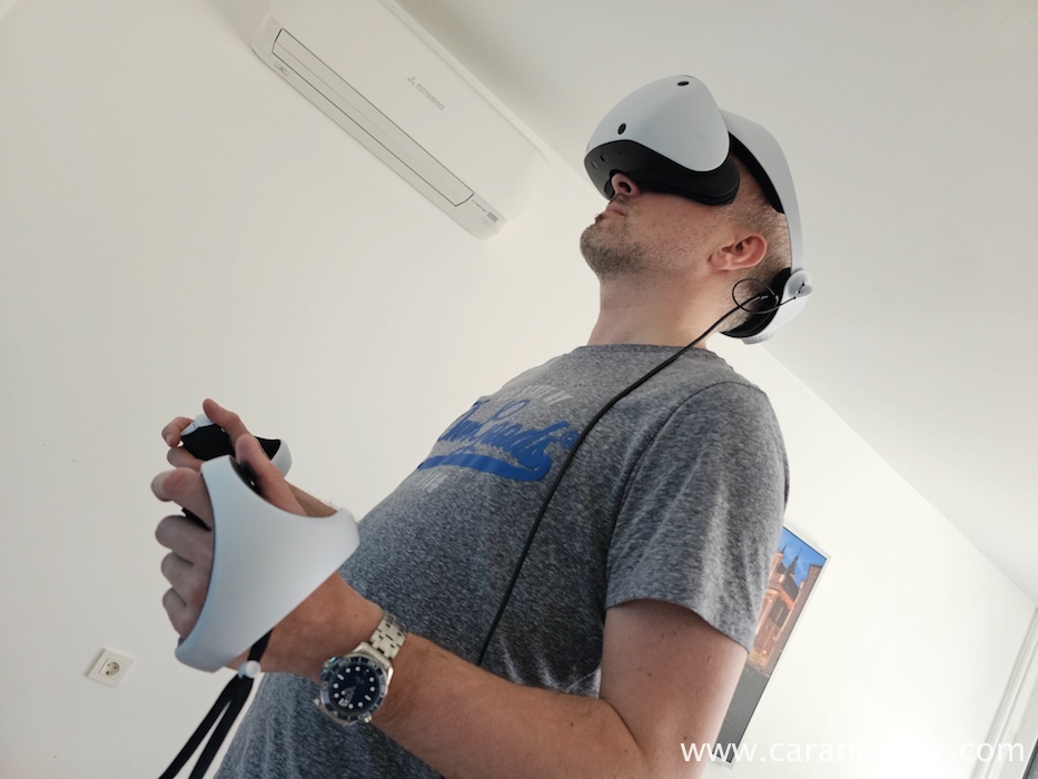 Mi smo preizkusili pet različnih iger. Začeli smo, kakopak, z GT7. Nov update 1.30 je prinesel novost z igranjem preko VR2. Izkušnja? Nora! Igra postane tako zelo realistična, da boste želeli prižgati radio, ali pa si nastaviti klimatsko napravo. Pomanjkljivost? Že po nekaj krogih vam lahko postane moteče slabo. Ena od bolj zanimivih iger v tem trenutku je vožnja s kajakom. Simulacija plovbe po Antarktiki in nekaterih drugih jezerih/rekah je posebno doživetje. Nekateri člani v uredništvu so se tako vživeli v igro, da so zajeli sapo, ko so dajali glavo „pod vodo“.