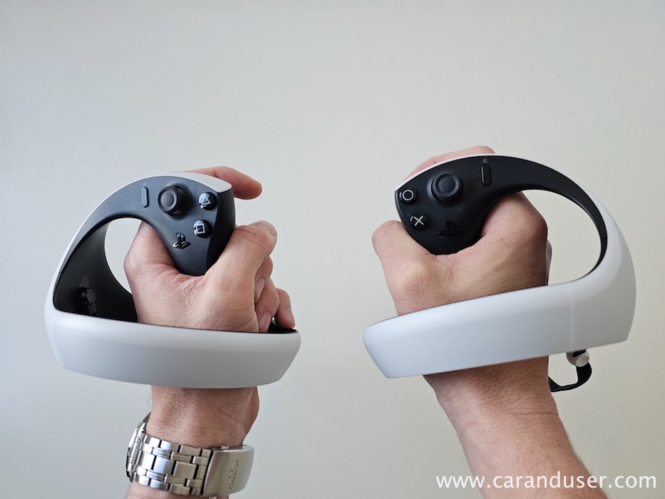 Spajanje s Playstationom 5 je sila preprosto. Kabel priklopite v USB-C režo nekaj klikov in že ste pripravljeni na izzive. Z „dvojko“ sta prišla tudi dva kontrolerja, ki sta na moč ergonomskih oblik, ponujata pa, poleg ustaljenih tipk, tudi tisto, ki jo upravljate s sredincem in je nekoliko skrita v samo držalo. Kontrolerja sta opremljena z dvema varnostnima vrvicama, ki si ju le dobro pričvrstite, saj bo mahanje pred ekranom ali zidovi kaj hitro poskrbelo za „znane leteče predmete“.
