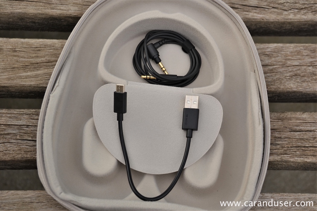 Dokopajmo se do slušalk. Ko odstranimo vrhnji pokrov škatle, nas pozdravi lepa ‘torbica’ peščene barve in origami oblike, ki svojo pravo plat razkrije, ko zadrgo odpeljemo z enega na drugi konec. Slušalke elegantno umeščene v oblazinjeno notranjost, kjer se v sredini nahajajo magnetna vratca, pod katerimi se skriva polnilni kabel ter audio priključek. Pa pustimo zdaj detajle. Ob prvem stiku z naglavnimi slušalkami me prešineta dve besedi: mehkoba in lahkotnost, kar se prevede v trajajoče udobje.