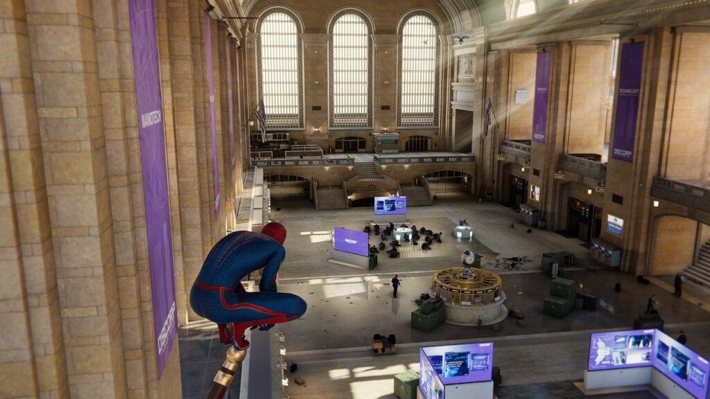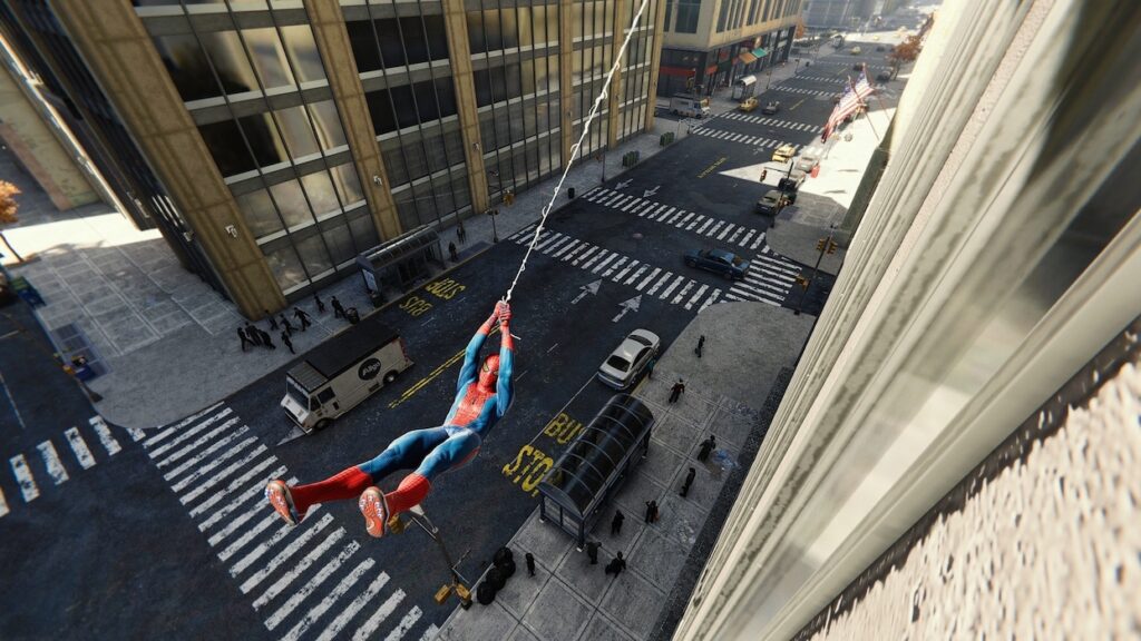 Osrednjega junaka Spider-Man / Peter Parker so postavili v Marvelov New York, kjer se bori proti celi kopici nepridipravov. Igra nudi tako imenovano ʺopen worldʺ doživetje, kjer se lahko igralec napoti v kateri koli del mesta, zavije v vsako ulico in pristane na kateremkoli zidu ali strehi. Skozi mesto se najhitreje pomikamo z uporabo lokacijski točk oziroma ʺpodzemne železniceʺ. Bolj kot to, se po mestu še raje podamo z uporabo pajkove niti, ki je pravzaprav glavni atribut našega junaka. Z njo se po domače ʺguncamoʺ skozi mesto, izvajamo različne trike, pri tem pa pridobivamo hitrost in izkušnje. Mehanika nihanja je pri tem resnično dodelana in zagotovo predstavlja novo in drugačno igralno izkušnjo.