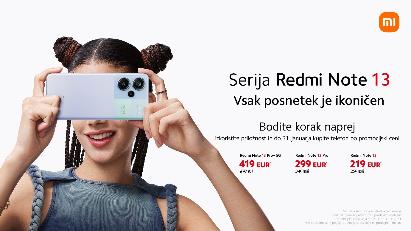 Redmi Note 13 Pro+5G bo znižan s 479 na 419 €; Redmi Note 13 Pro s 349 na 299 € in Redmi Note 13 z 259 na 219 €.