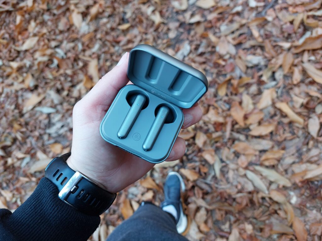 Izredno priročno je preprosto upravljanje z osnovnimi funkcijami kar preko slušalk. Za povečanje glasnosti enostavno s prstom tapneš po logotipu na desni slušalki, za znižanje enako na levi. Funkcija, ki je pri takšnih slušalkah prej svetla izjema kot pravilo, posebej v tem cenovnem razredu. Telefona praktično ni potrebno jemati iz žepa ali nahrbtnika. Čas predvajanja je na papirju več kot tri ure in pol, v praksi pa je ta čas pri najvišji glasnosti predvajanja (ki kot rečeno ni tako visoka, da bi lahko škodovala sluhu) manj kot tri ure. Priročen in lično oblikovan etui naj bi slušalki napolnil petkrat, v praksi sem jih uspel napolniti trikrat, skoraj štirikrat.