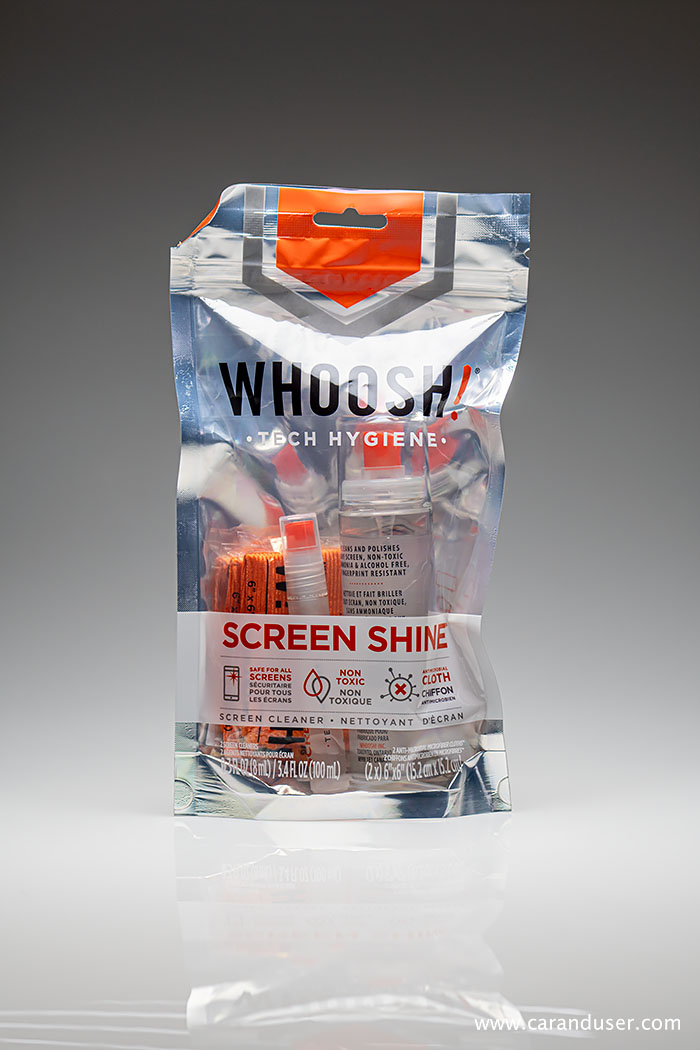 Po prvi uporabi in začudenju, kako dobro deluje, sem malce raziskal svetovni splet in ugotovil, da je prav WHOOSH! “uradno” čistilo vseh Applovih trgovin v severni Ameriki. Poleg tega je formula čistila zasnova tako, da ne vsebuje škodljivih sestavin, je brez vonja in deluje antibakterijsko ter kljub svoji čistilni moči ohranja premaze s katerimi so tovarniško premazani ekrani in leče objektivov nedotaknjene.
