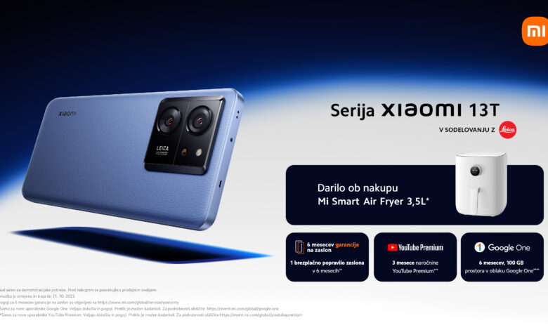 Xiaomi 13T Pro in Xiaomi 13T bosta na voljo od 27. septembra. Ob nakupu katerega koli modela iz serije Xiaomi 13T bodo kupci prejeli v dar Mi Smart Air Fryer 3.5L, ponudba pa traja do 31. oktobra,