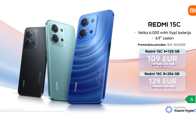 Redmi 15C je na voljo v pomnilniških različicah 4GB+128GB in 8GB+256GB, za oba telefona pa velja promocijska ponudba do konca septembra, v sklopu katere jih je mogoče kupiti po ceni 109 evrov za Redmi 15C (4+128 GB) in 129 evrov za Redmi 15C (8+256 GB).