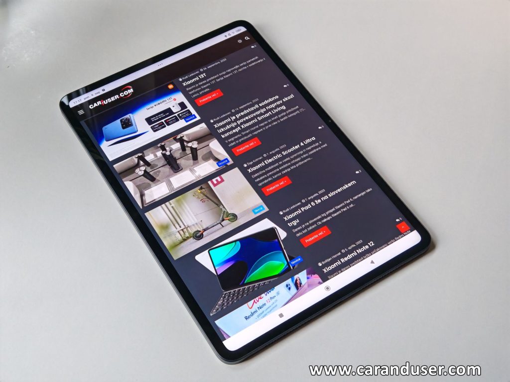 Sicer se zajeten zaslon ponaša z ločljivostjo 2.800 x 1.752 slikovnih pik in uporablja prilagodljivo frekvenco osveževanja 144 Hz, ki se lahko samodejno prilagodi glede na opravljeno nalogo. Ne glede na to, ali spremljate serije, igrate igrice ali pripravljate dokumente, visoka frekvenca osveževanja zagotavlja gladke prehode in tekoče delovanje brez nepotrebnega obremenjevanja baterije. Zaslon podpira tudi največjo svetilnost do 600 nitov, zaradi česar je tablico moč uporabljati tudi ob visoki zunanji svetlobi, hkrati pa je za neželene nezgode zaščiten s steklom Gorilla Glass 5. Poleg gledanja filmov, pretakanje video vsebin, se zelo dobro odreže pri urejanju fotografij ali videoposnetkov. Velikost zaslona omogoča enostavno odpiranje več oken hkrati, kar uporabnikom omogoča nemoteno preklapljanje med aplikacijami. Vključitev Xiaomijevega AdaptiveSync dodatno izboljša uporabniško izkušnjo, saj dinamično prilagaja hitrost osveževanja.