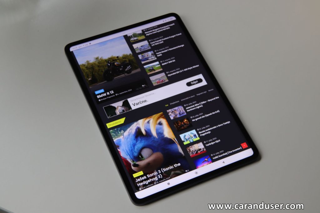 Sicer se zajeten zaslon ponaša z ločljivostjo 2.800 x 1.752 slikovnih pik in uporablja prilagodljivo frekvenco osveževanja 144 Hz, ki se lahko samodejno prilagodi glede na opravljeno nalogo. Ne glede na to, ali spremljate serije, igrate igrice ali pripravljate dokumente, visoka frekvenca osveževanja zagotavlja gladke prehode in tekoče delovanje brez nepotrebnega obremenjevanja baterije. Zaslon podpira tudi največjo svetilnost do 600 nitov, zaradi česar je tablico moč uporabljati tudi ob visoki zunanji svetlobi, hkrati pa je za neželene nezgode zaščiten s steklom Gorilla Glass 5. Poleg gledanja filmov, pretakanje video vsebin, se zelo dobro odreže pri urejanju fotografij ali videoposnetkov. Velikost zaslona omogoča enostavno odpiranje več oken hkrati, kar uporabnikom omogoča nemoteno preklapljanje med aplikacijami. Vključitev Xiaomijevega AdaptiveSync dodatno izboljša uporabniško izkušnjo, saj dinamično prilagaja hitrost osveževanja.