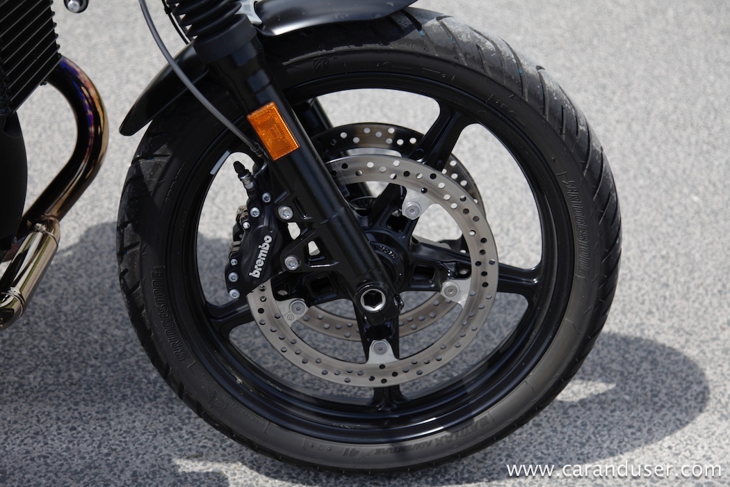 Niti mi ni tako zelo všeč sama silhueta, veliko bolj me pritegne filozofija, pritegnejo me detajli na teh motorjih. Zdi se mi, da so pri teh »kao« butičnih motorjih, še precej bolj izraziti, kot pri katerikoli drugi »karoserijski« obliki. Samo poglejte za primer rjav usnjen sedež. Pa obliko izpušnih loncev. Pa grafiko. Pa petkraka platišča. Pa preprost prikazovalnik osnovnih informacij. Pa … Ja, cel kup je teh nekih podrobnosti, ki sestavijo in predstavijo zares vpadljivo in glave sukajočo celoto. To mi je pri teh motorjih res všeč.