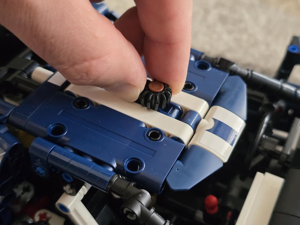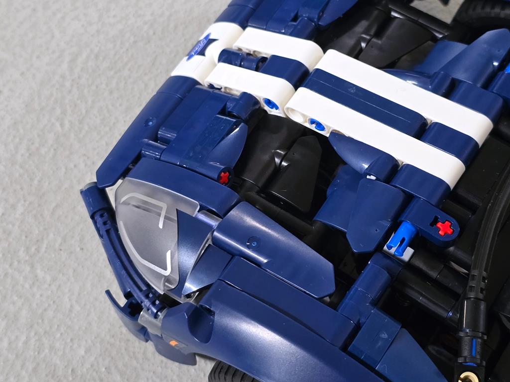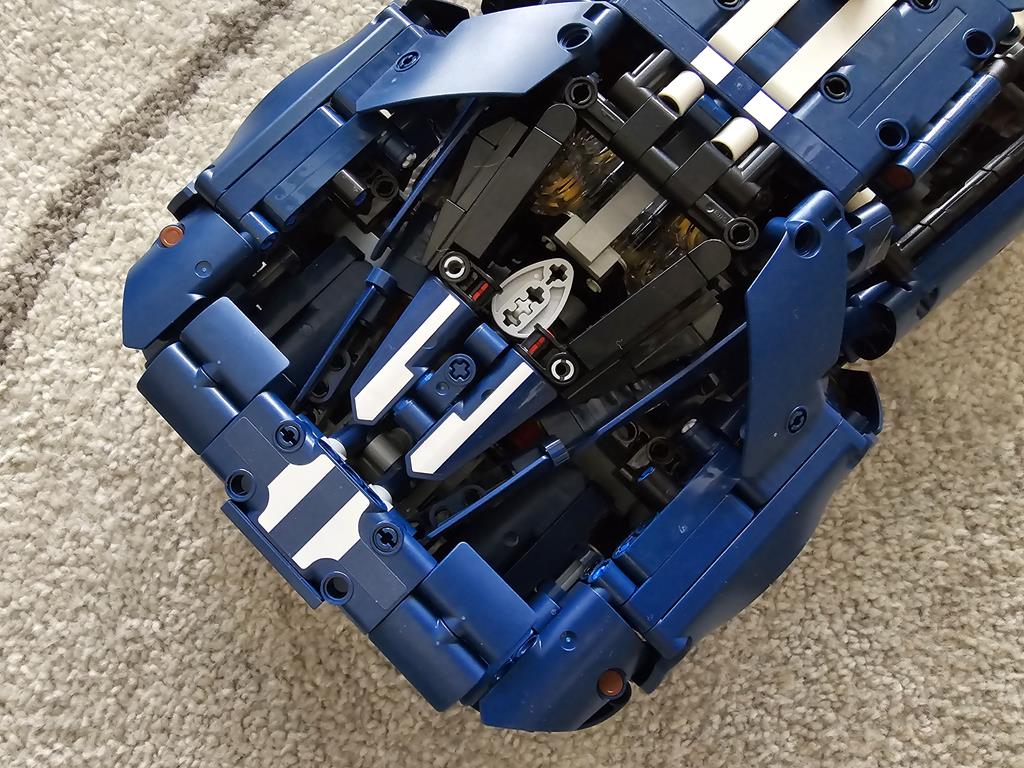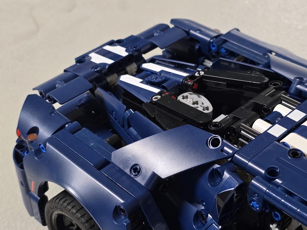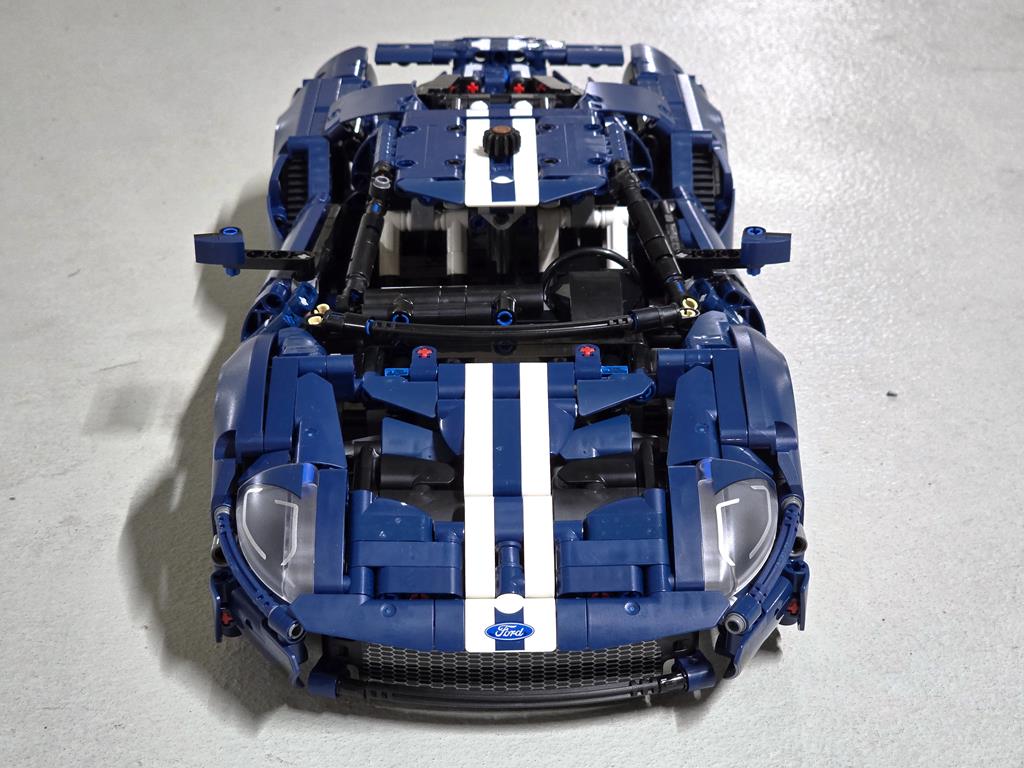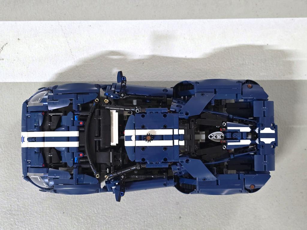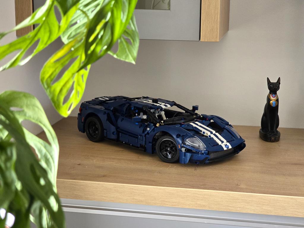 Moj zadnji podvig je bil 2022 Ford GT. 39 cm dolg, 18 cm širok in 9 cm visok model sestavlja 1.468 sestavnih delov. Primeren pa je za osebke starosti vsaj 18 let. Dobro, osebno sem mnenja, da bi kak 12-letnik zadevščino spravil skupaj veliko hitreje od mene. Kot je to značilno za vse njihove proizvode, tudi legendarnega GT-ja odlikuje kvalitetna izdelava in ogromno tehničnih detajlov. V6 motor premore gibljive bate in ojnico, diferencial je v polni funkciji, za realistično krmiljenje poskrbi delujoč krmilni mehanizem, odlično lego na polici pa zagotavlja neodvisno vzmetenje z nastavljivim aerodinamičnim pomagalom. Za sestavljanje sem porabil 5 ur. Kar je v primerjavi s časom, ki je potreben za sam razvoj takšnega modela, mačji kašelj. Velja omeniti, da je bil set predstavljen v letu 2022, kar pomeni, da se bo set počasi umaknil, boste pa zanj v tem trenutku morali odšteti 130 evrov.