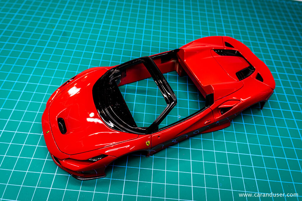 V dosedanjem, malce spremenjenem, vrstnem redu gradnje makete Ferrarija F8 Spider, ste lahko videli že vse večje sestavne dele naše makete. Tokrat vam kot zadnjega predstavimo še karoserijo. Karoserija je pri maketah najpomembnejši in najbolj viden sestavni del, zato ji vedno posvetimo največ pozornosti. Tudi tokrat ne bo nič drugače. Vse skupaj se prične s temeljito pripravo, to smo tokrat že opravili, več o njej pa najdete tukaj: Priprava resniskih delov