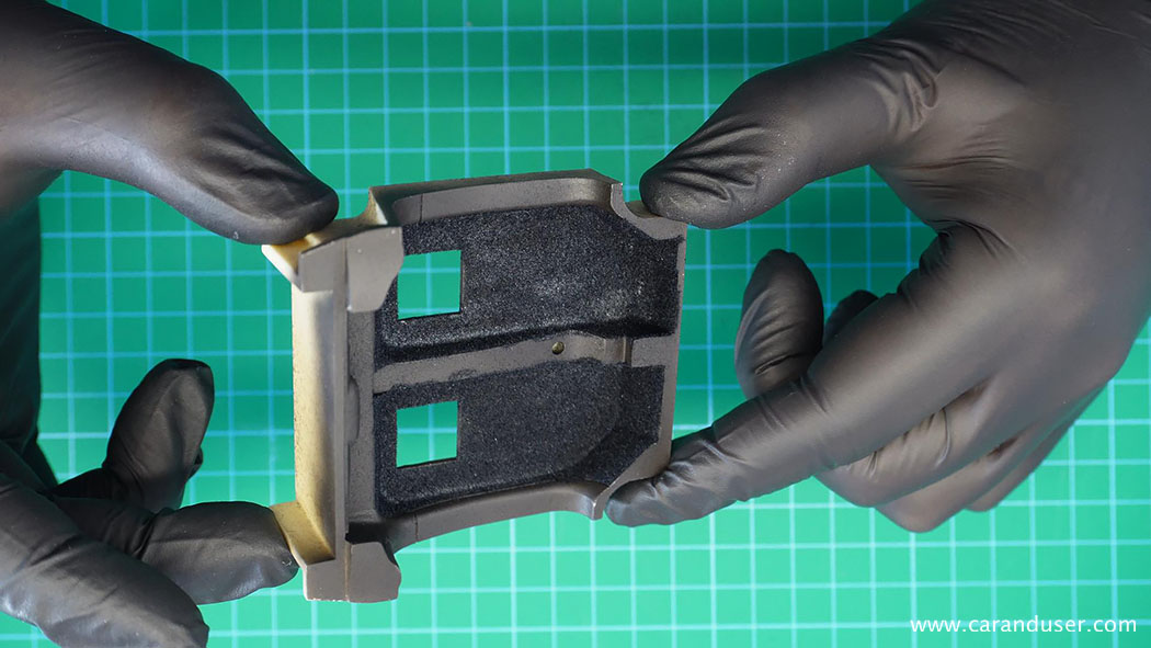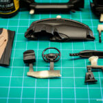 Tako si nekaj sklopov notranjosti, kot so vratni paneli in armaturna plošča, pripravimo v naprej in se posvetimo sedežem. Tudi tokrat so pri Alpha Model vključili karbonske nalepke. Te sicer niso tako obsežne kot pri našem prejšnjem projektu, vendar kljub vsemu zagotovijo prepričljiv izgled sedežev in armaturne plošče.