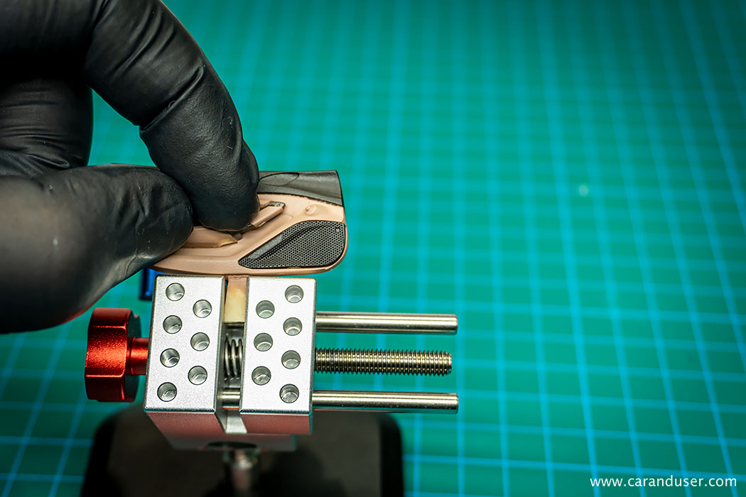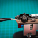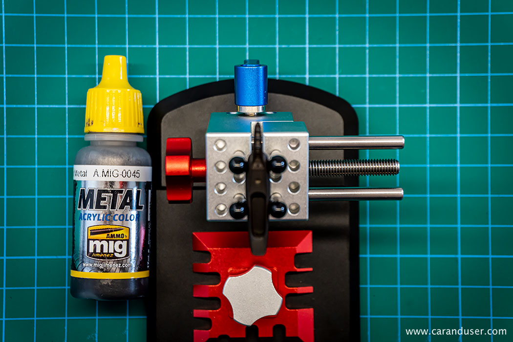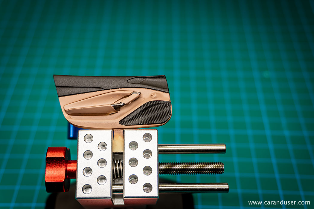 Naslednji korak je detajliranje. Tega začnemo z uporabo Gun metal odtenka in čopiča. S to kombinacijo pobarvamo kovinske detajle v notranjosti, kot so prezračevalne reže, kljuke in tipke menjalnika.