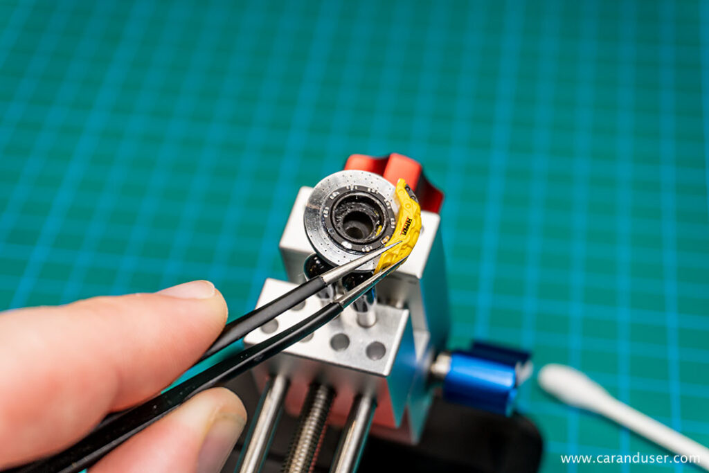 Da zagotovimo realen izgled zavornih diskov, kovinske dele le-teh pobrusimo z uporabo rotacijskega orodja in malce bolj grobe pile. Kako izgledajo zavorni diski po končanem postopku v praksi, si lahko ogledate v videu: