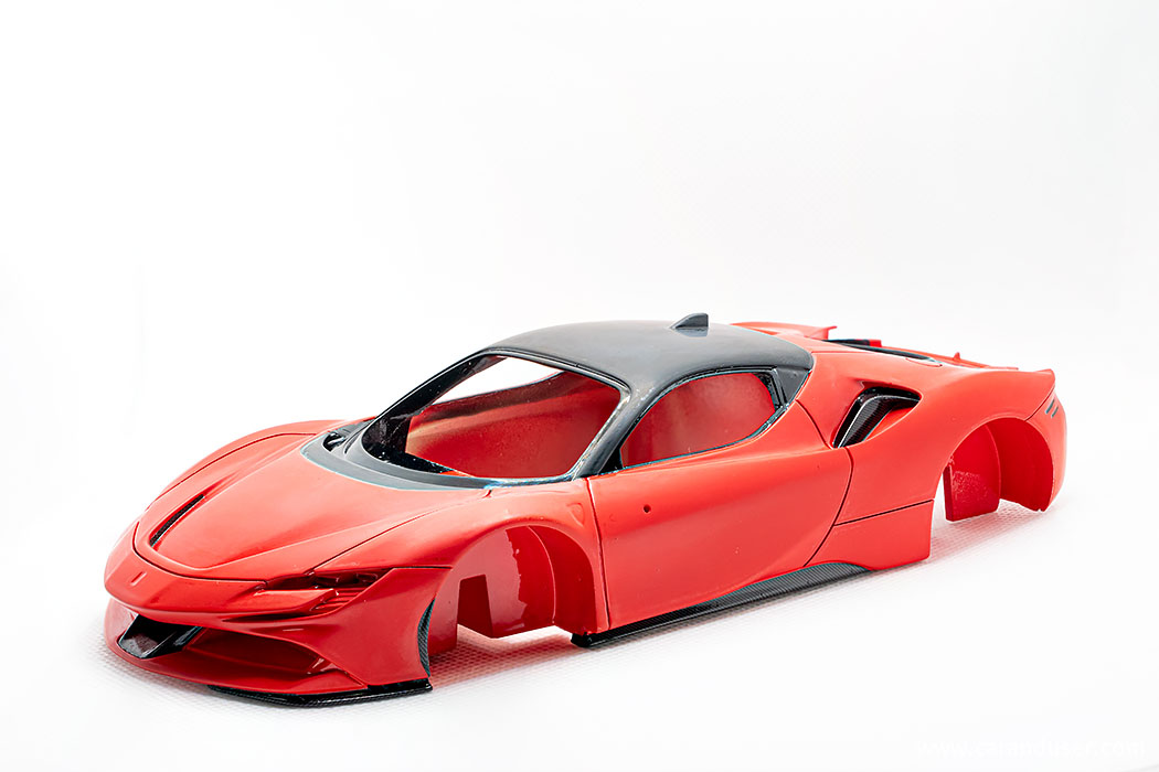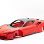 V tokratnem prispevku o gradnji makete, vam bomo predstavili postopek nanašnja nalepk na površino makete. Natančneje bomo tokrat imeli opravka z nalepkami, ki ponazarjajo ogljikova vlakna na zunanjosti Ferrarija SF90 Stradale.