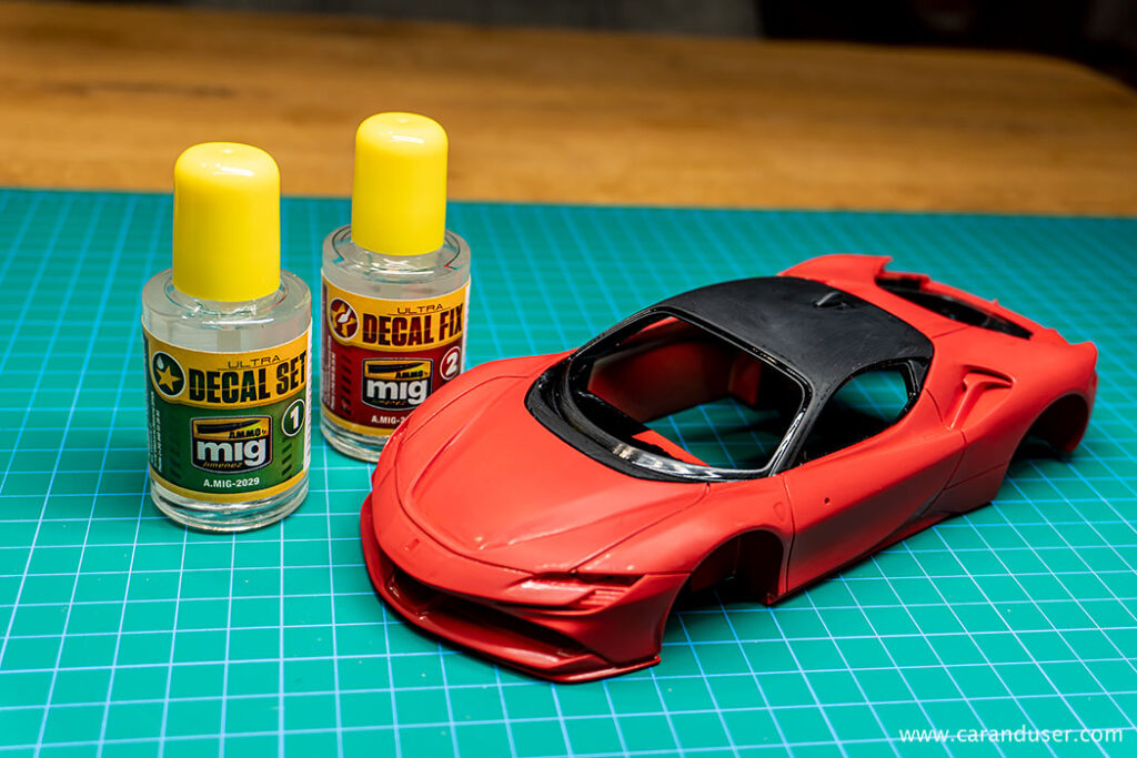 V tokratnem prispevku o gradnji makete, vam bomo predstavili postopek nanašnja nalepk na površino makete. Natančneje bomo tokrat imeli opravka z nalepkami, ki ponazarjajo ogljikova vlakna na zunanjosti Ferrarija SF90 Stradale.