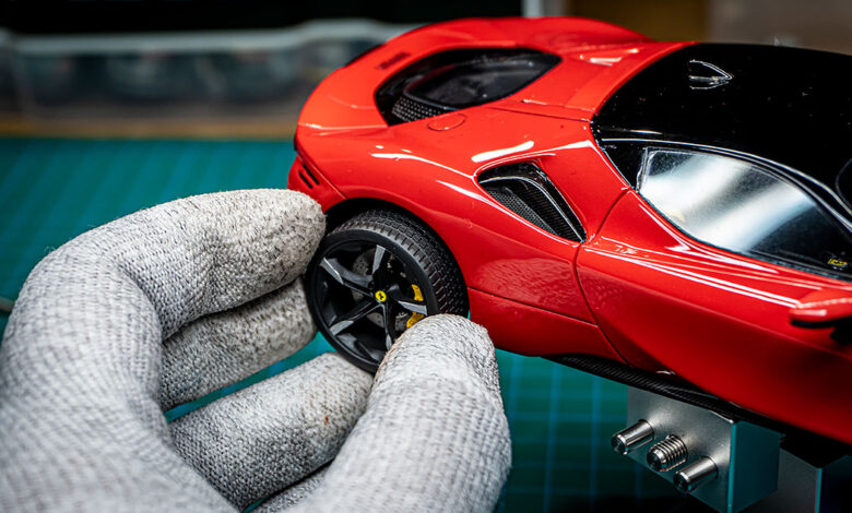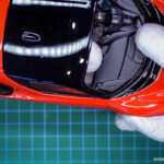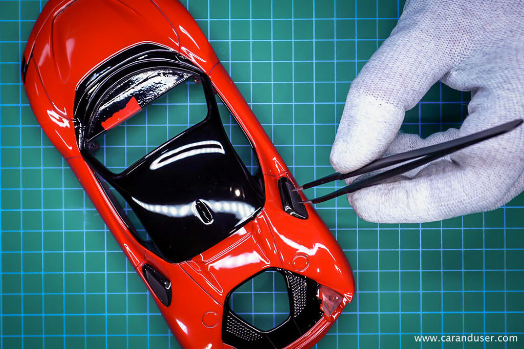 Odgovor je ne! Pa ne zaradi drugačnih stekel ali načina nameščanja koles, ampak predvsem zaradi izkušenj. Če smo pri Singerju DLS in Bugatti Chironu edini pravi graji namenili steklom in nameščanju koles, katerih smo se tudi tokrat lotili z malce spoštovanja in kar malce zavlačevali s tema korakoma, smo, ko je kljub vsemu prišlo do njih, z nekaj predznanja in izkušnjami ugotovili, da je tokrat pravzaprav najtežji korak nameščanje zadnji prezračevalnih mrežic. Ampak gremo lepo po vrsti.
