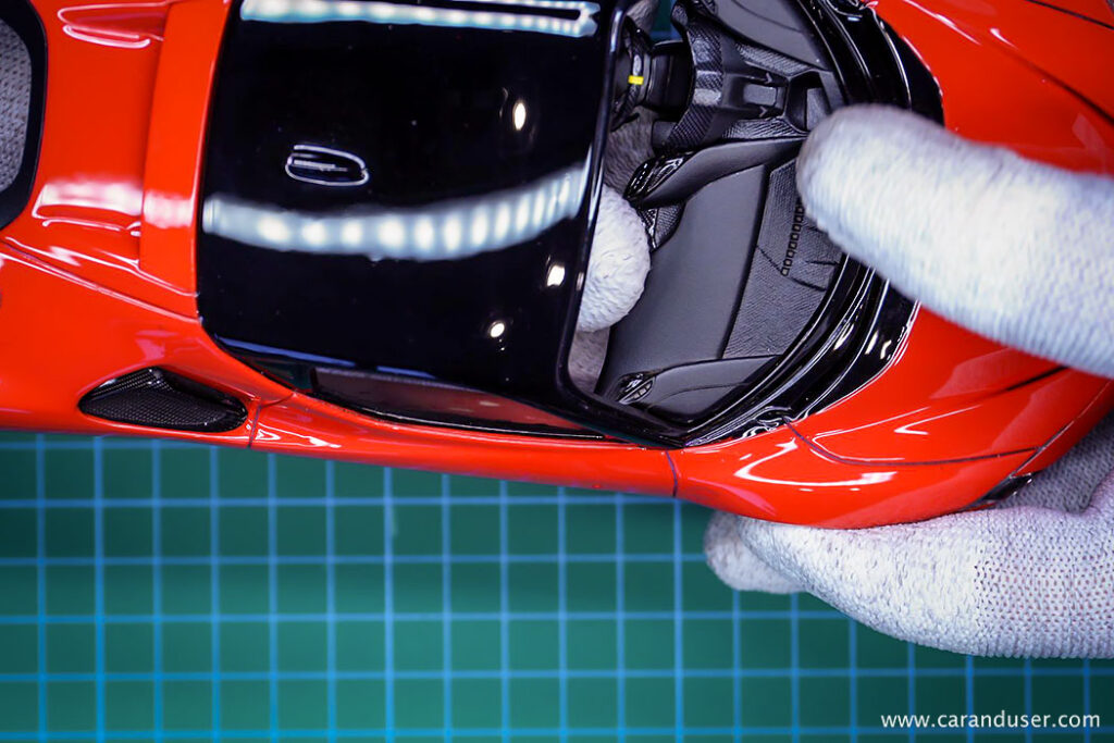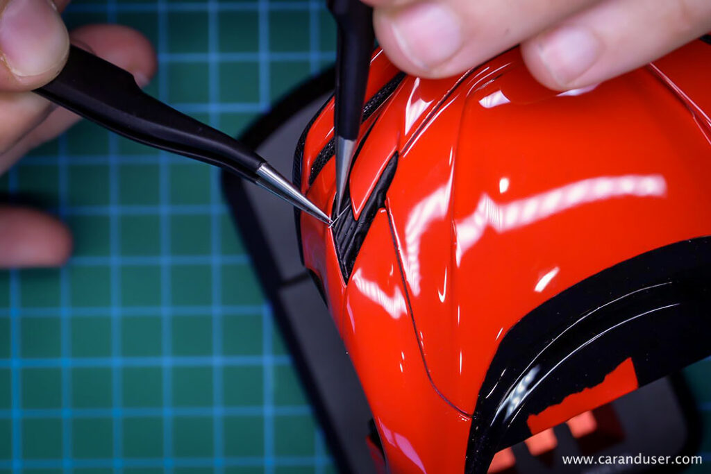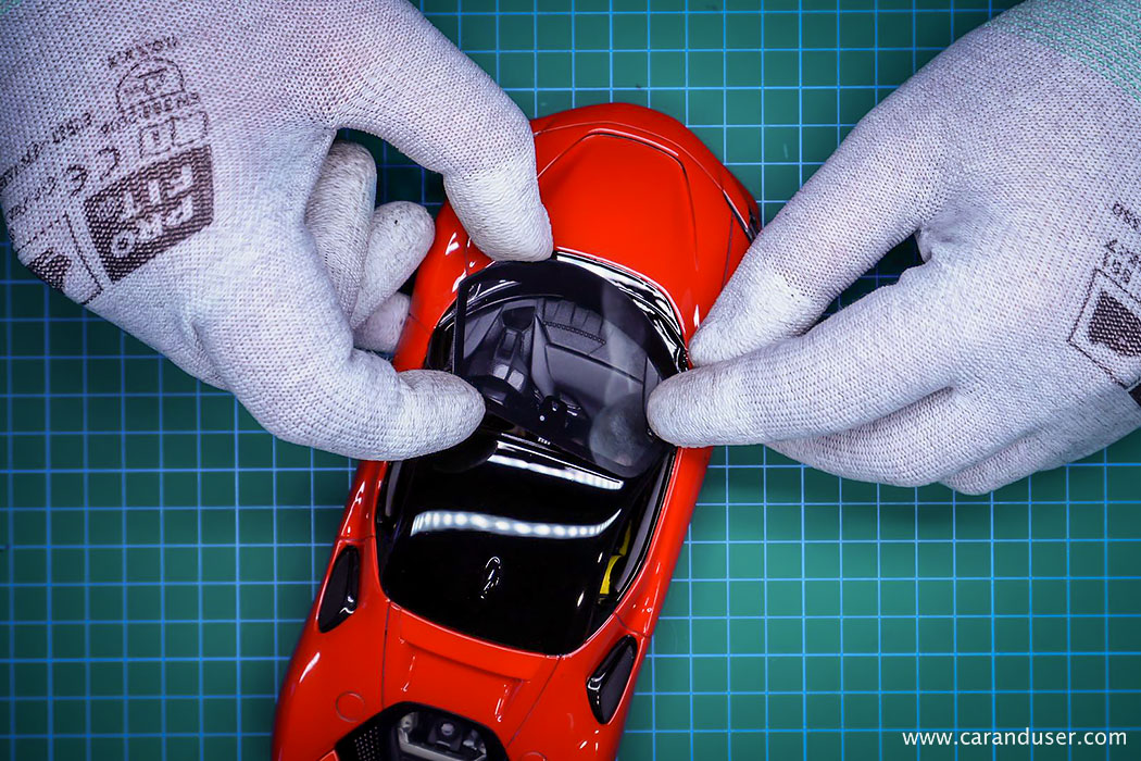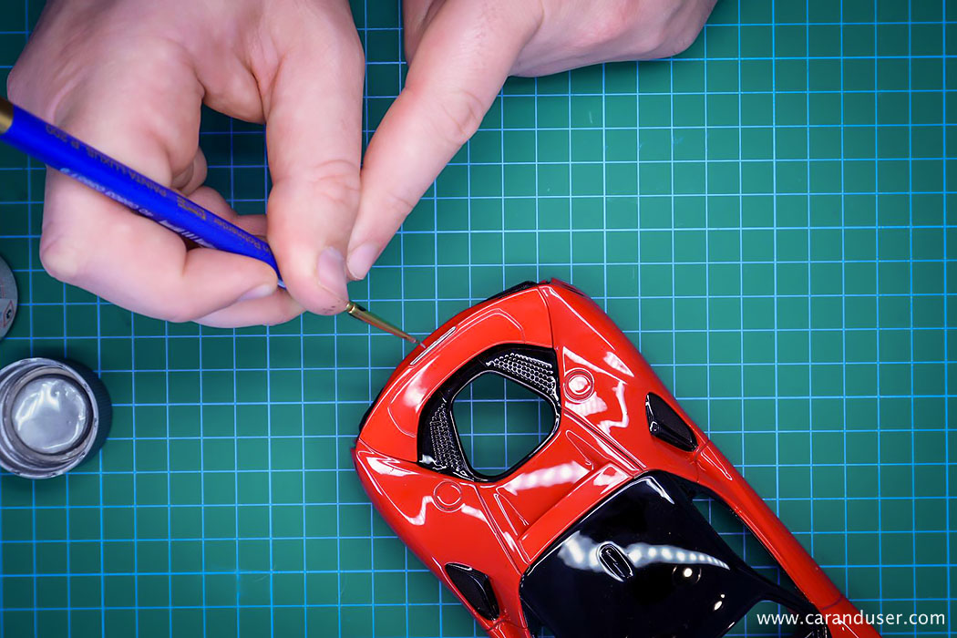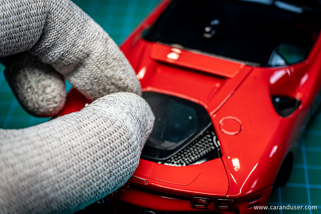 Odgovor je ne! Pa ne zaradi drugačnih stekel ali načina nameščanja koles, ampak predvsem zaradi izkušenj. Če smo pri Singerju DLS in Bugatti Chironu edini pravi graji namenili steklom in nameščanju koles, katerih smo se tudi tokrat lotili z malce spoštovanja in kar malce zavlačevali s tema korakoma, smo, ko je kljub vsemu prišlo do njih, z nekaj predznanja in izkušnjami ugotovili, da je tokrat pravzaprav najtežji korak nameščanje zadnji prezračevalnih mrežic. Ampak gremo lepo po vrsti.