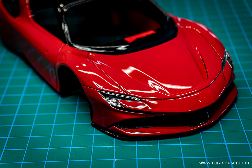 Na zadnji sliki že lahko vidite končano maketo, vse detajle in končni izgled pa vam izdamo v prihodnjem zadnjem prispevku o Ferrariju SF90 Stradale.