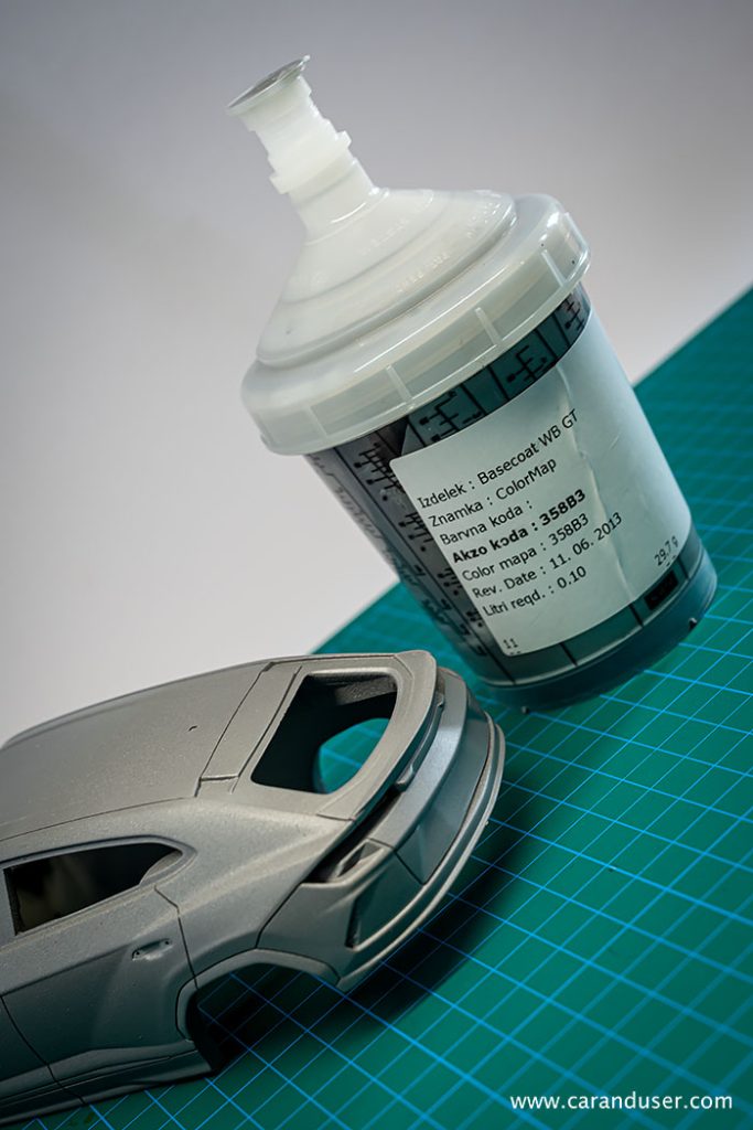 Sledi nestrpno čakanje, pregled karoserije in čiščenje airbrusha ter potem nanašanje naše posebne barve. Barvni odtenek sicer bazira na osnovni barvni mapi podjetja AkzoNobel, a kot omenjeno so v njem najmanjši možni kristali. Barvo ulijemo v airbrush in nanesemo prvi sloj. Po prvem sloju in brez laka barva še nima končnega odtenka vendar se je že takrat opazilo, da so kristali v njej praktično nevidni tudi pod izjemno močno lučjo. Nanesemo še dva dodatna sloja in zaključimo z barvanjem.