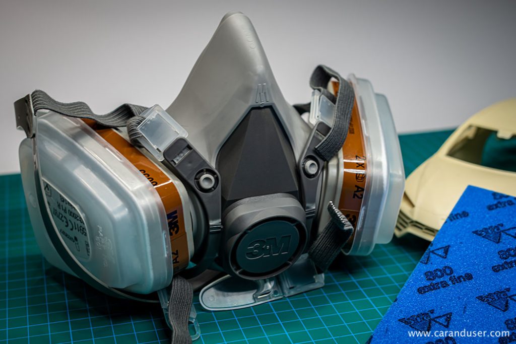 Velja omeniti še obvezen del zaščitne opreme, ki jo potrebujemo od tega koraka dalje. Gre za zaščitno masko, prosto leteči delci resinske smole niso nič kaj prijazni do vaših pljuč in zato so nam pri podjetju Spekter Žalec priskrbeli odlično 3M zaščitno masko z oljčnimi filtri in filtri za zadrževanje prašnih delcev. Z dobro zaščitenimi dihali in ustreznim nožkom (uporabljene sta bili debelini 0,1 in 0,2 mm) se sprehodimo po vseh kanalih, ki jih na Urusu ne manjka. Odvečen material odstranimo z uporabo zobne ščetke in v našem arzenalu pripomočkov poiščemo naslednjega.
