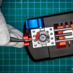 Da bomo lahko pnevmatike in platišča namestili na našo maketo, smo v mat črno barvo odeli bloke, kamor bodo nameščene zavore in kasneje kolesa, zavorne čeljusti pa smo tokrat pobarvali v živo rdečo barvo. Pri Porscheju živo rdeča barva zavornih čeljusti pomeni, da so koluti izdelani iz kovine in ne karbona, zato smo kovinske obloge zavornih diskov zgolj ustrezno pobrusili in jim s tem zagotovili prepričljivejši izgled ter poseben kovinski sijaj.