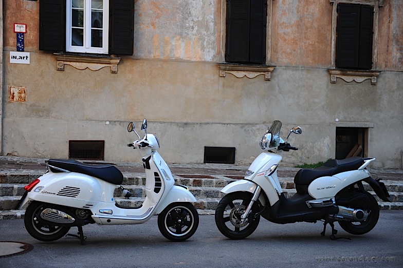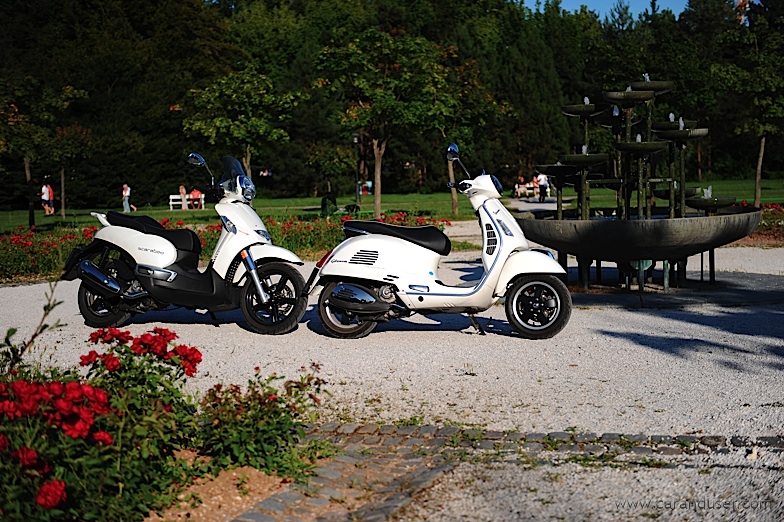 Čeprav je motorna zasnova obeh skuterjev podobna (v obeh primerih gre za 300 kubični agregat), se motorja po namembnosti in uporabnosti močno razlikujeta. Vespo bomo pogosto srečevali v mestnih središčih, saj je njena okretnost na nivoju 50-kubičnega skuterja, redkeje pa se bodo lastniki z njo podali na izlete v dvoje ob koncih tedna. Za te namene je Aprilia mnogo bolj primerna, medtem ko okornost in velik obračalni krog v mestu terjata svoj davek.