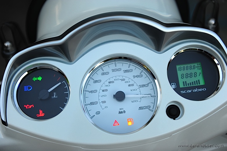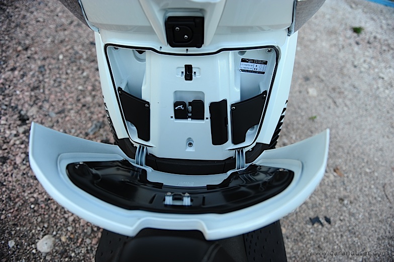 Oba skuterja v primerjavi s 50-kubičnimi sesalci ponujata precejšen nadstandard. Prtljažni prostor se v obeh primerih odpira električno, a je le-ta v Scarabeu izdatneje odmerjen, medtem ko boste pri Vespi primorani kupiti še originalni čeladi, v kolikor jih boste želeli shranjevati pod sedežem. Poskrbljeno je tudi za drobne sladkorčke, kot sta priročen predal pred nogami in držalo za aktovko ali nakupovalno vrečko.