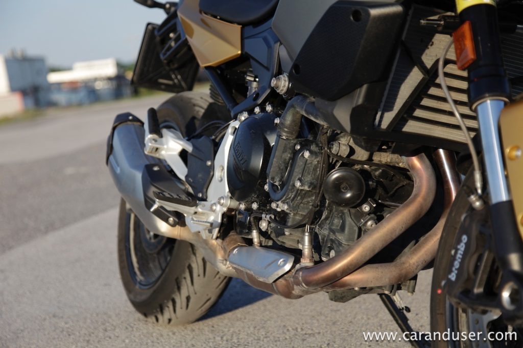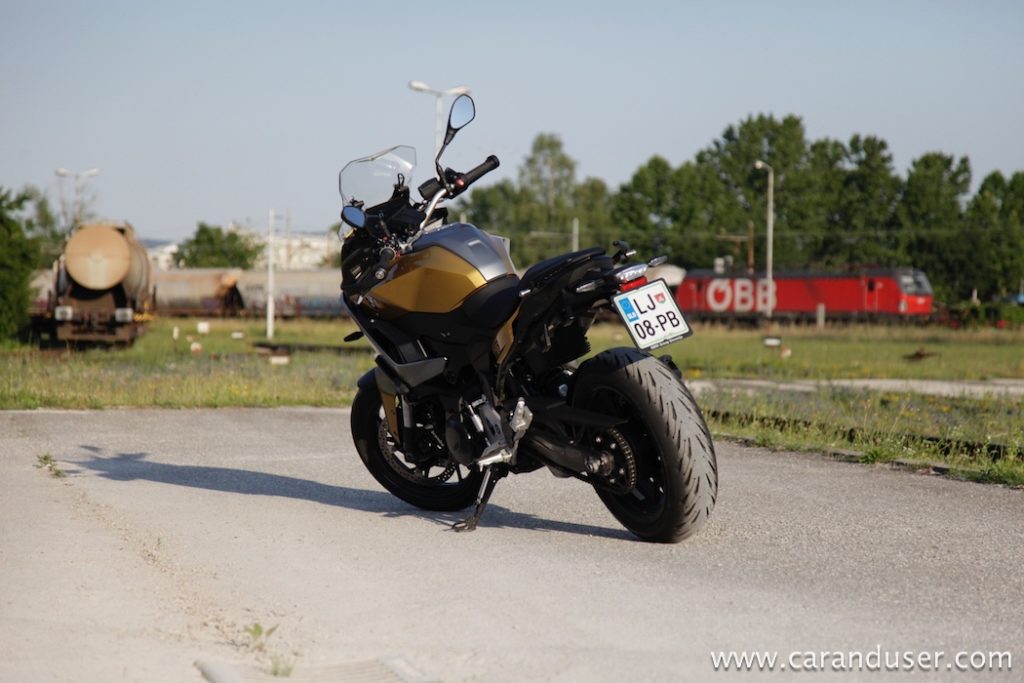 Pravzaprav ne vem, ali bi ga primerjala z avionom ali z vlakom, saj me je navdajal občutek, da se motor pelje po tirnicah. Nič ga ni spravilo z začrtane poti, požiral je luknje na cesti, pesek in kamenje, ki ga nalivi pustijo na cestišču ga tudi niso preveč zmedli. Ovinke je pojedel za malico in pri pospeševanju mi je dajal občutek, da nima končnega limita. Omogoča izredno čiste in enakomerne pospeške, zato je vožnja na dolge proge z njim pravi balzam za dušo. Si predstavljam, da je to še posebej relevantno za vse, ki vam na zadnjem sedežu pogosto delajo družbo sopotnice.
