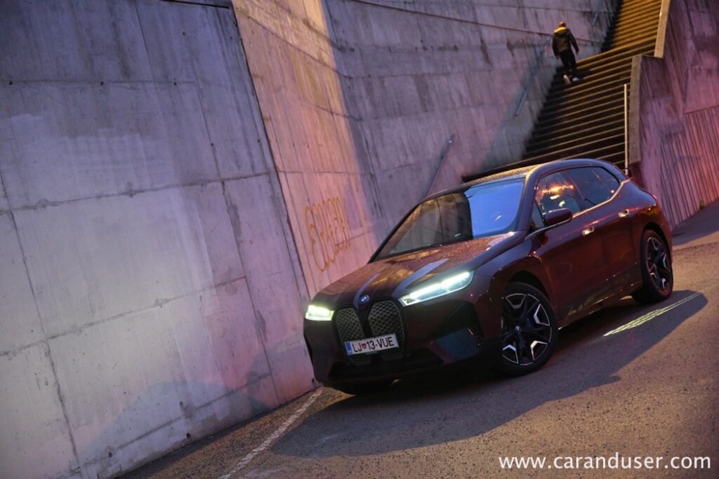 Kateregakoli lastnika BMW-ja nesporno navdušuje dinamični pedigre te znamke. Pa naj bo to kombilimuzinska družinska serija 2 Active Tourer pa vse do admiralskega X7, prav vsi modeli so tako ali drugače skoraj religiozno zavezani dobri cestni dinamiki. Pri iX se zgodba vendarle lomi, saj so Nemci želeli ustvariti nekaj drugačnega, nekaj bolj elegantnega in dovršenega. Seveda, zmogljiv električni pogon s 385 kW (524 KM) in 765 Nm kar 2,6 tone zajetnega iX do stotice dobesedno katapultira v 4,6 sekunde, vendar se med zavoji občuti, da je vozilu precej nelagodno. S slonom pač težko tekmujete na pasjem agility poligonu. BMW iX ni in tudi ne želi biti dinamike poln voz, temveč raje naokoli potuje kot prestižni asfaltni uživač.