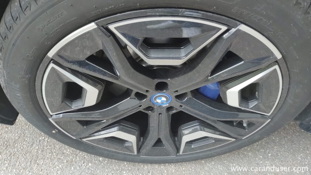 Pogon tvorita dva elektromotorja, do katerih se lahko normalno dokopljejo zgolj serviserji. Vse kar lahko na sprednjem pokrovu odprete vi je značka BMW-ja, ki utre pot do rezervoarja z vetrobranskim čistilom. Električni dvojec se sicer hrani iz 105 kWh (neto) zajetne baterije, ki jo boste na hišni vtičnici polnili skoraj tri dni. BMW obljublja maksimalno moč polnjenja 195 kW v primeru DC polnilne postaje oziroma zgolj 11 kW v primeru izmeničnega toka. Morda je tu potrebno Bavarce vseeno razumeti, saj apelirajo na polnjenje z domačimi Wallboxi (7kW AC), medtem ko se hitri avtocestni postanki vršijo na časovno manj potratnih, a bistveno bolj zmogljivih enosmernih polnilnih postajah.