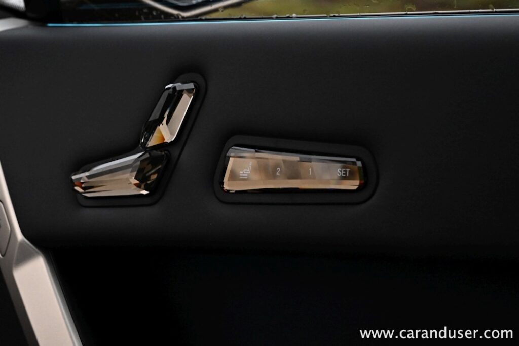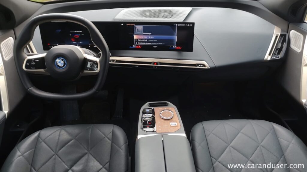Kam pa iX dimenzijsko pravzaprav paše? Po dolžini sodeč k modelu X5, pa čeprav ima nekoliko daljšo medosno razdaljo, medtem ko je glede na višino bližje kupejevskemu X6. Skratka med vrh bavarske X druščine. To se posledično pozna na prostornosti in ob odprtju dveri se filozofija iX pravzaprav šele začne. Vozilo so oblikovali s konceptom Shy Tech, ki izredno dovršeno digitalno tehnologijo potisne v ozadje in potnikom nudi udobje potovanja prvega razreda nad oblaki. Minimalistično odmerjena stikala v kristalu, osrednja konzola iz plemenitene vrste lesa, vrhunsko Bowers&Wilkins ozvočenje z nevidno vgrajenimi zvočniki, nesimetrični šestkotni volan, trajnostno naravnano usnjeno oblazinjenje narejeno na osnovi iz oljčnih listov, velik ukrivljen zaslon z dvema prikazovalnikoma, panoramska steklena streha Sky Lounge z elektrokromatskim zasenčenjem ter vrhunski materiali na nivoji elitnih salonov. Zdi se, da je poslanica BMW-ja iX ustvariti nadstandardni mobilni prostor v katerem redki želijo še več, medtem ko je vozna dinamika tokrat drugotnega pomena.