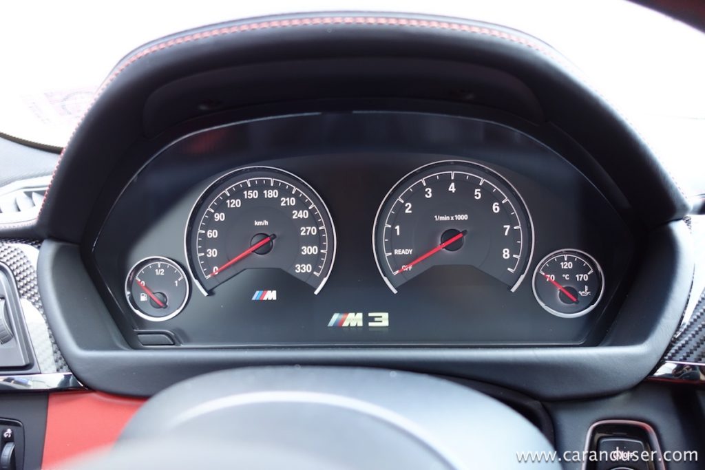 Zamera? Kje pa, kapo dol. Kaj bi lahko torej bilo? Je morda to cena. Testni je stal bogatih 113.000 evrov. Drago? Seveda. Predrago? Nisem prepričan. Ni pa bilo to, kar me je žulilo. V nekem trenutku sem ugotovil, da je 431 »konjev« preveč za zadnji pogon. BMW dela izjemen štirikolesni pogon x-Drive. Ne vem zakaj te opcije ne ponudijo v M3. 4,1 sekunde do 100 je teoretični podatek ob uporabi launch controla in na idealni podlagi. V praksi izgleda zadeva tako, da M3 dokaj počasi melje do kakšnih 30, 40 km/h. Armaturna plošča sveti in utripa. Nato zadnja kolesa širine 275 mm zagrabijo in do kakih 80km/h sedaj solidno vleče. Nato, ko je oprijem 100 odstoten pa se mu »odpuli« in naslednja oznaka, ki jo vidite je 180 km/, če pa ste bolj počasni pri gledanju na števec hitrosti pa 210 km/h. Aja na lokalni cesti, da ne bo pomote.