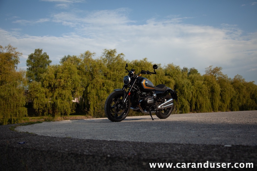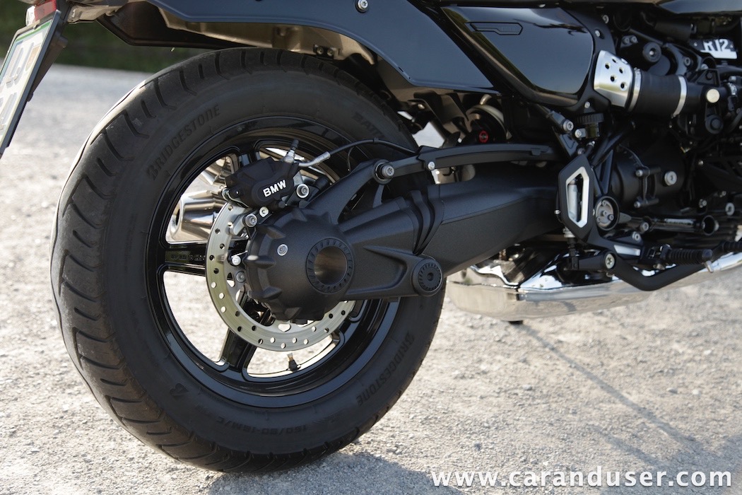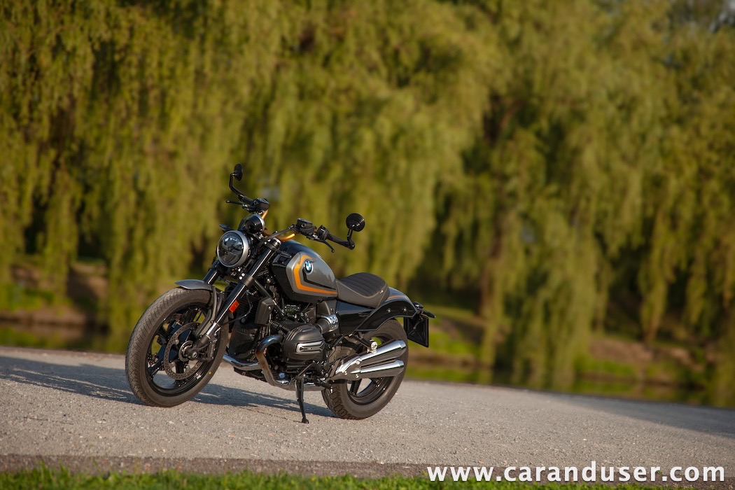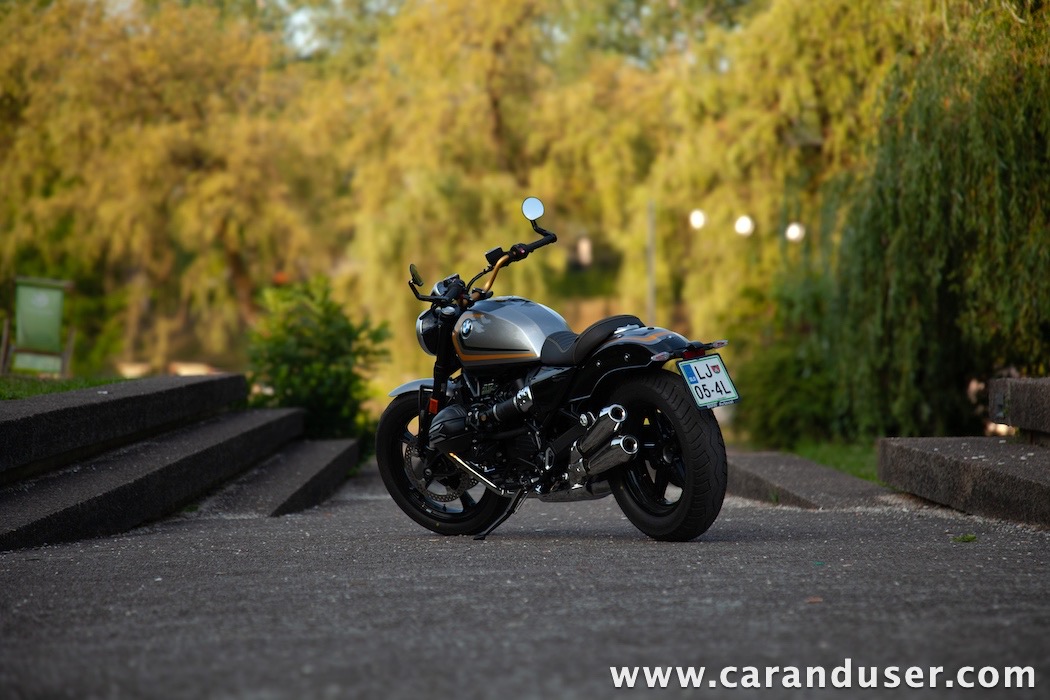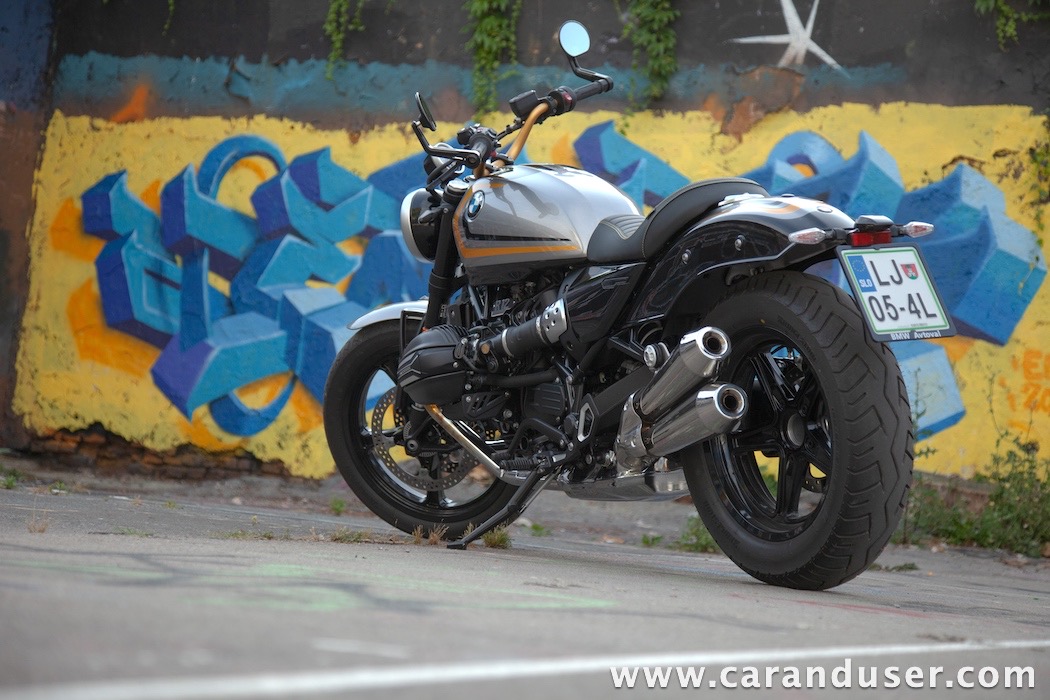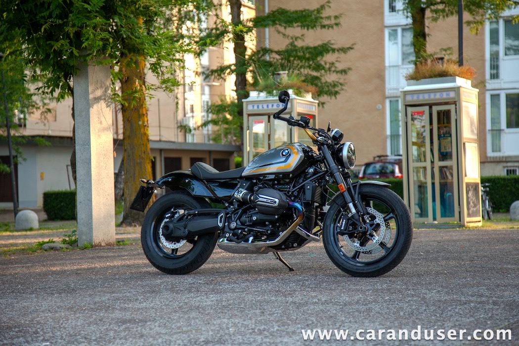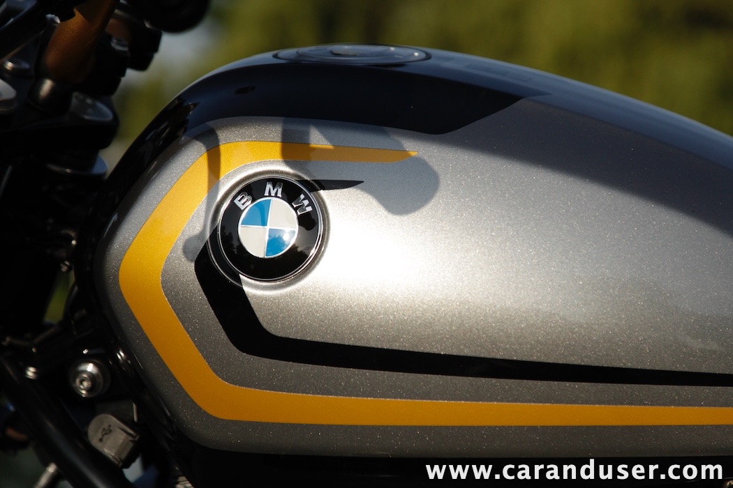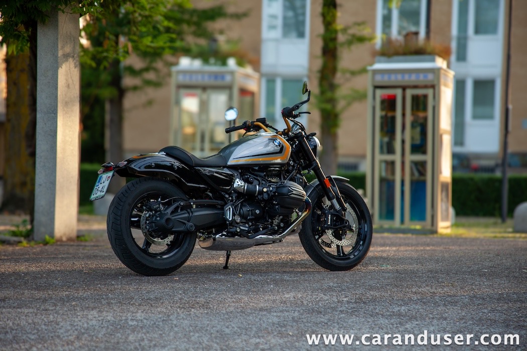 Tokrat smo preizkusil “osnovni” model – BMW R 12. V primerjavi z jubilejnim “najntijem” premore deset kilovatov šibkejšo konjušnico in 5 Nm navora manj. Posledično boste v eni uri pod polnim plinom prevozili sedem kilometrov krajšo pot. Prednja vilica ni nastavljiva, kompletno vzmetenje pa ima 30 mm manj hoda. Drugačne so pnevmatike, par milimetrov razlike pri medosju in dolžini, ter par kilogramov pri teži. R 12 premore jeklen rezervoar z dvema litroma manjšo prostornino. In eno motorno “mapo” manj. Nič kaj drastičnega.