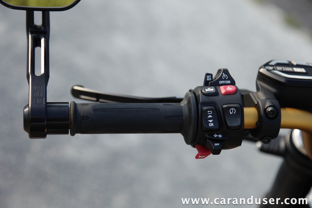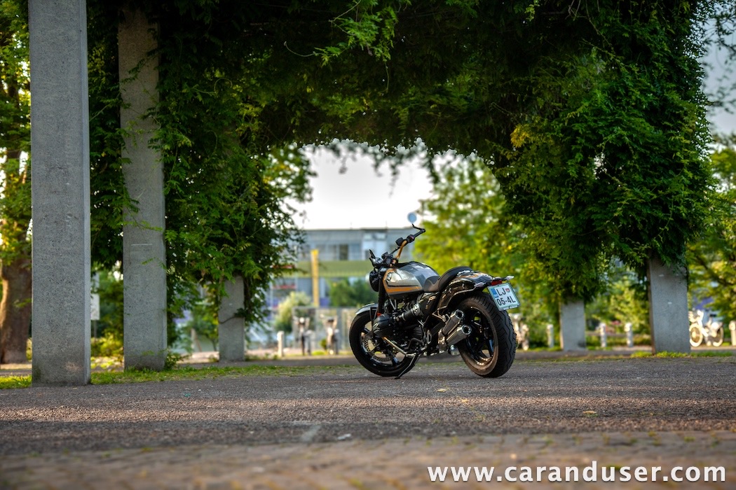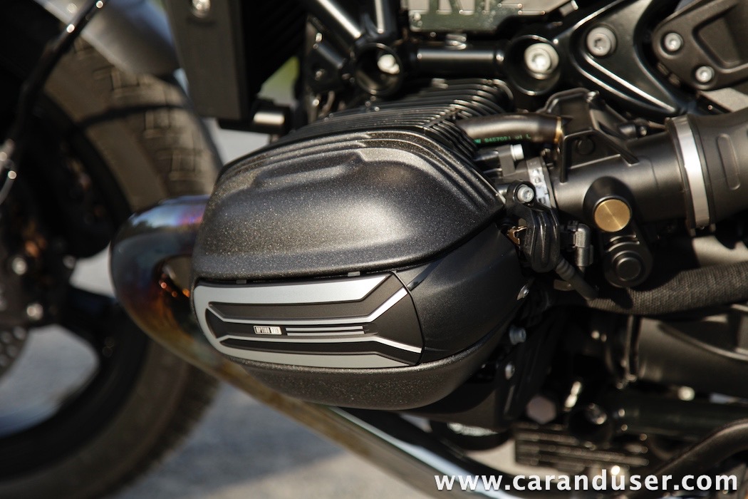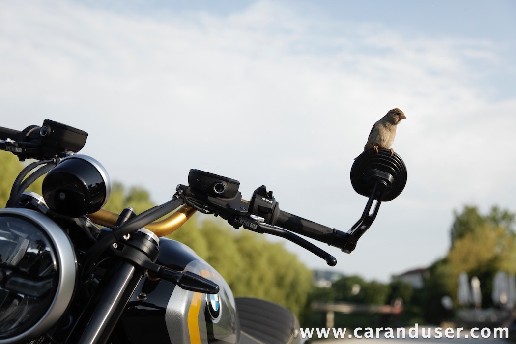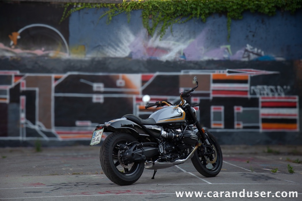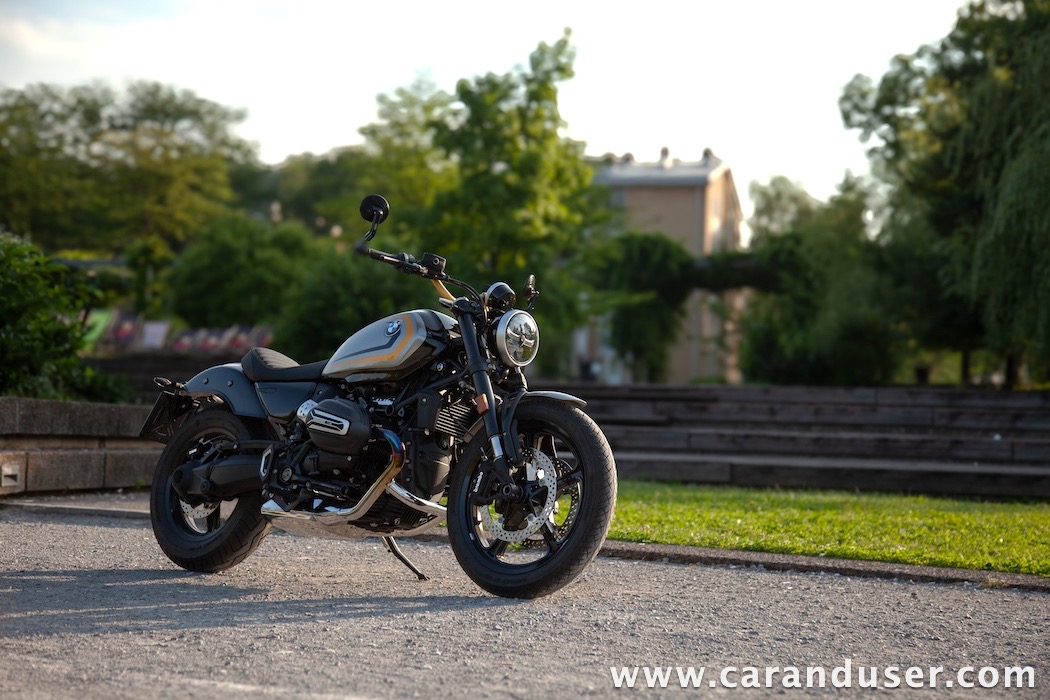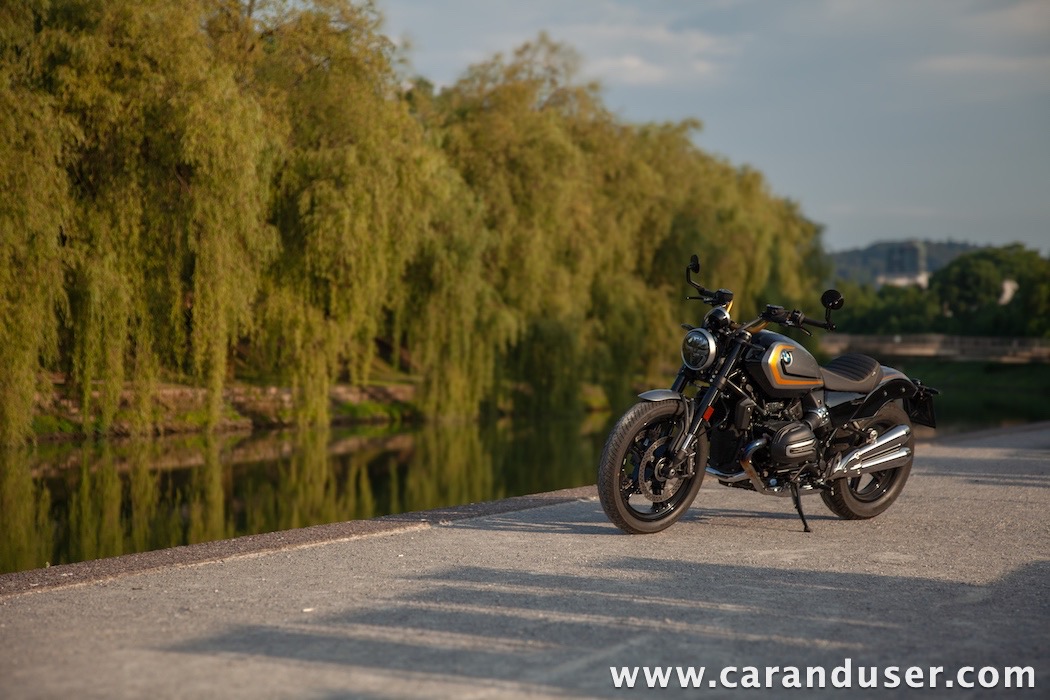 Tokrat smo preizkusil “osnovni” model – BMW R 12. V primerjavi z jubilejnim “najntijem” premore deset kilovatov šibkejšo konjušnico in 5 Nm navora manj. Posledično boste v eni uri pod polnim plinom prevozili sedem kilometrov krajšo pot. Prednja vilica ni nastavljiva, kompletno vzmetenje pa ima 30 mm manj hoda. Drugačne so pnevmatike, par milimetrov razlike pri medosju in dolžini, ter par kilogramov pri teži. R 12 premore jeklen rezervoar z dvema litroma manjšo prostornino. In eno motorno “mapo” manj. Nič kaj drastičnega.