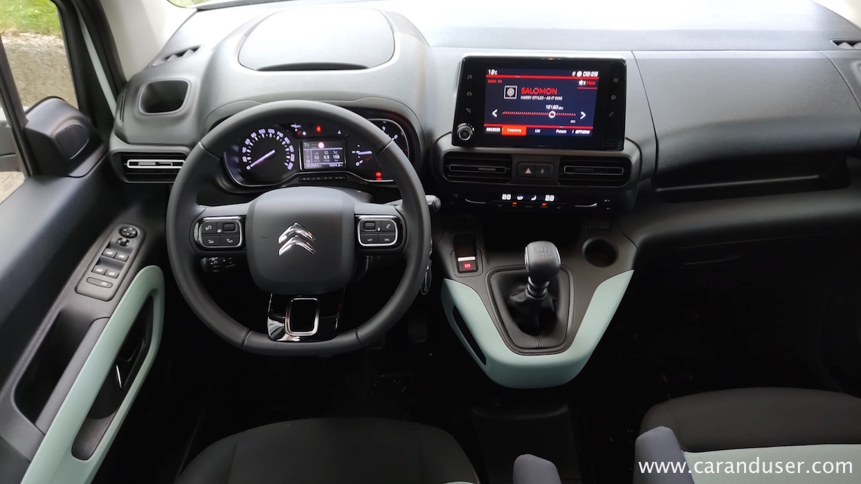 V nedrjih Berlinga se pred kapitanom in prvim častnikom nahaja znana Citroënova ambientalna arhitektura. Najbogatejši sklop opreme Shine prinaša voznikov 10-palčni digitaliziran instrumentacijski zaslon ter osrednji 8-palčni multimedijski, kjer se izriše tudi vzvratna kamera, ki močno olajša manevriranje neskromno odmerjenega francoza. Pri tem velja omeniti, da bo klasični (gospodarski) Berlingo N1 ob prestavitvi menjalnika v vzvratno prestavo pričel piskati, kot to počno njegovi delovni bratje. Moteče? Niti najmanj …