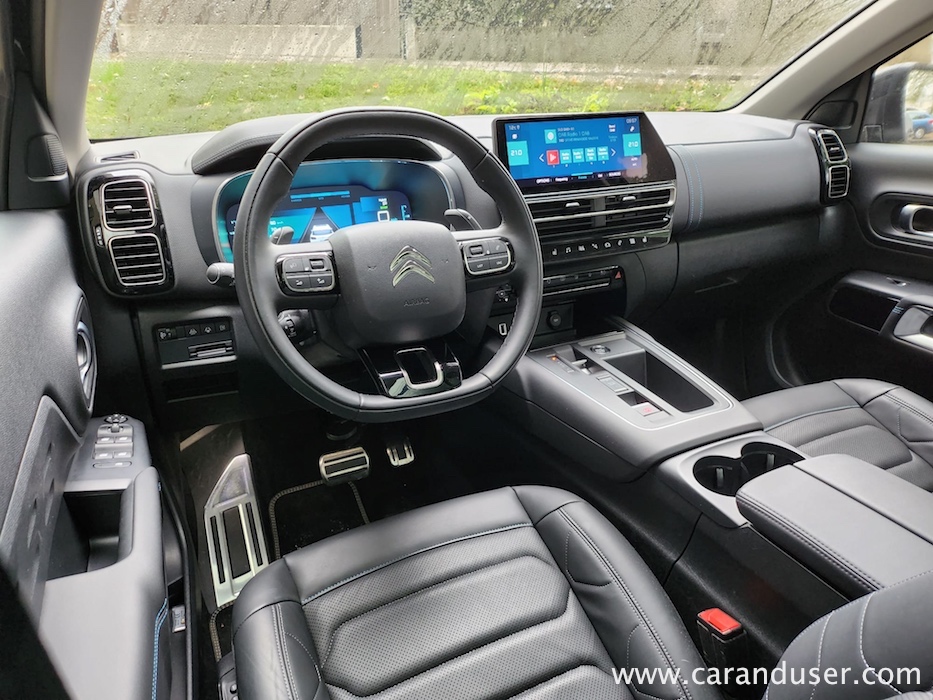Tega po besedah Citroëna opredeljuje deset adutov in mi smo pod inšpektorsko lupo preverili prav vse. Prvi se glasi trije tipi motorjev – bencinski, dizelski in priključni hibrid. Testnež je s seboj pripeljal najbolj zmogljivo opcijo, in sicer kombinacijo bencinsko-električne simbioze s kar 225 KM oz. 165 kW moči. Tej poveljuje 1,6-litrski prisilno polnjeni bencinar, medtem ko elektromotor z močjo 81 kW venomer prednjači pri vrtenju koles, vendar le ko je njegova 13,2 kWh (bruto) zajetna elektro-špajza ustrezno napolnjena.