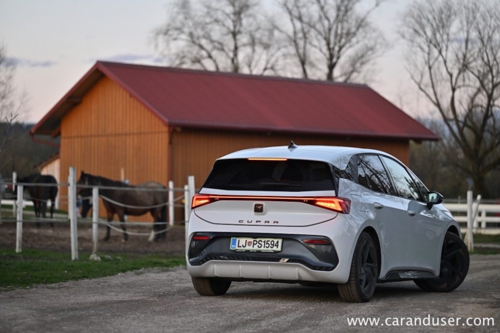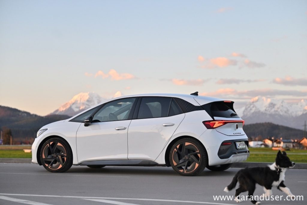 Embalaža brez vsebine ne šteje, zato je komaj tri leta star Cuprin električar kmalu po premieri že doživel rahlo medgeneracijsko posodobitev, nedavno pa je bil deležen tudi možnosti dokupa toplotne črpalke, ki močno vpliva na upravljanje toplote in posledično porabo elektrike. Naš testnež je pripeljal z zajetnejšo e-špajzo, ki sprejme 77 kWh energije in je tako primerna tudi za dnevne migrante z daljšimi avtocestnimi relacijami. Če kar takoj oglodamo pogonsko kost, potem k bateriji dodajmo še zmogljiv e-motor z močjo 170 kW oziroma bolj domačimi 231 KM ter nezanemarljiv podatek, da se moč prenaša na zadnjo os. Govorimo torej o relativno urnemu zadnjemu pogonu, ki bo ljubiteljem cestne dinamike uspel narisati nasmešek ali dva. Za tiste najbolj zahtevne bo kmalu v salone pripeljal še bolj nabrit Born VZ, mi pa smo bili z eBOOST tehnologijo, ki ob pritisku volanske tipke z logotipom znamke hipno sprosti dodatnih 20 kW moči, dobro zadovoljni.