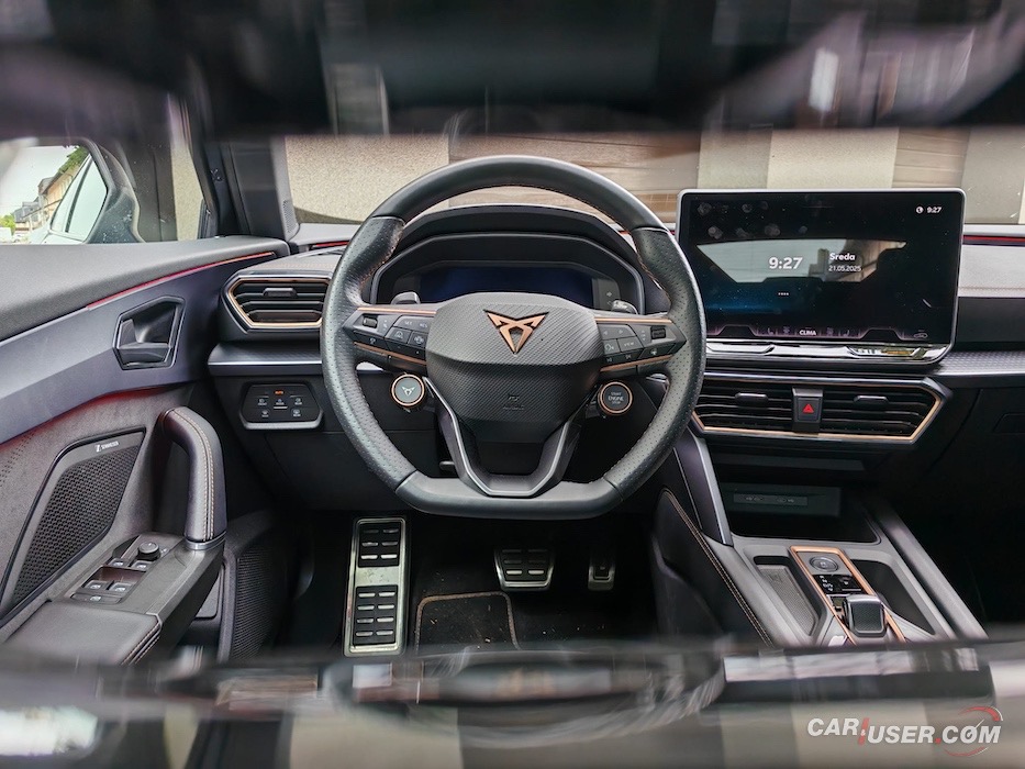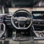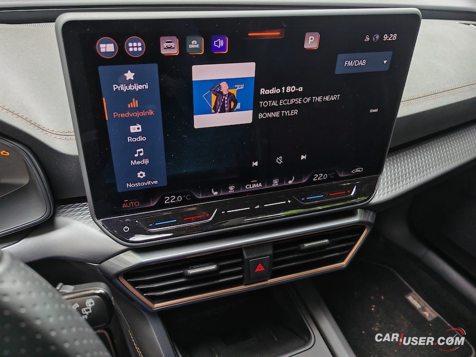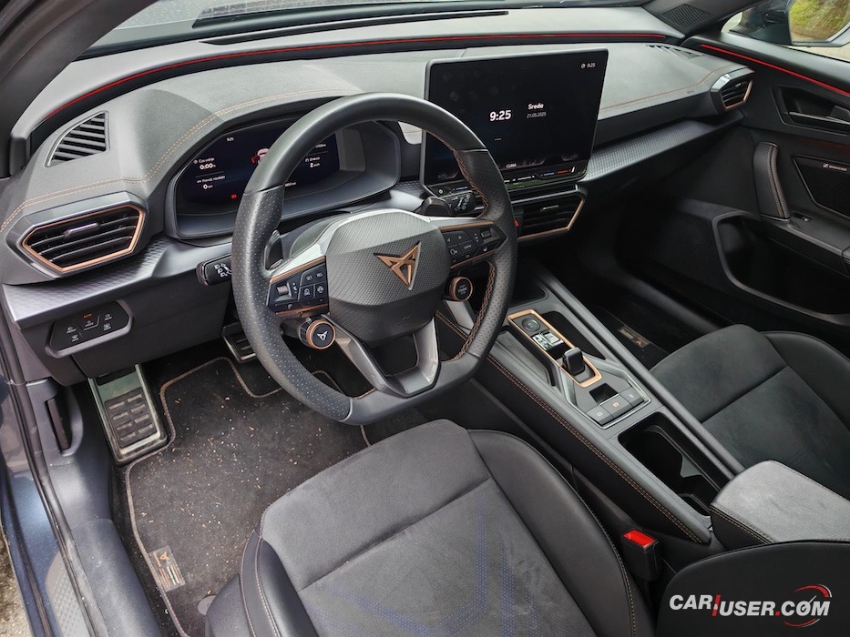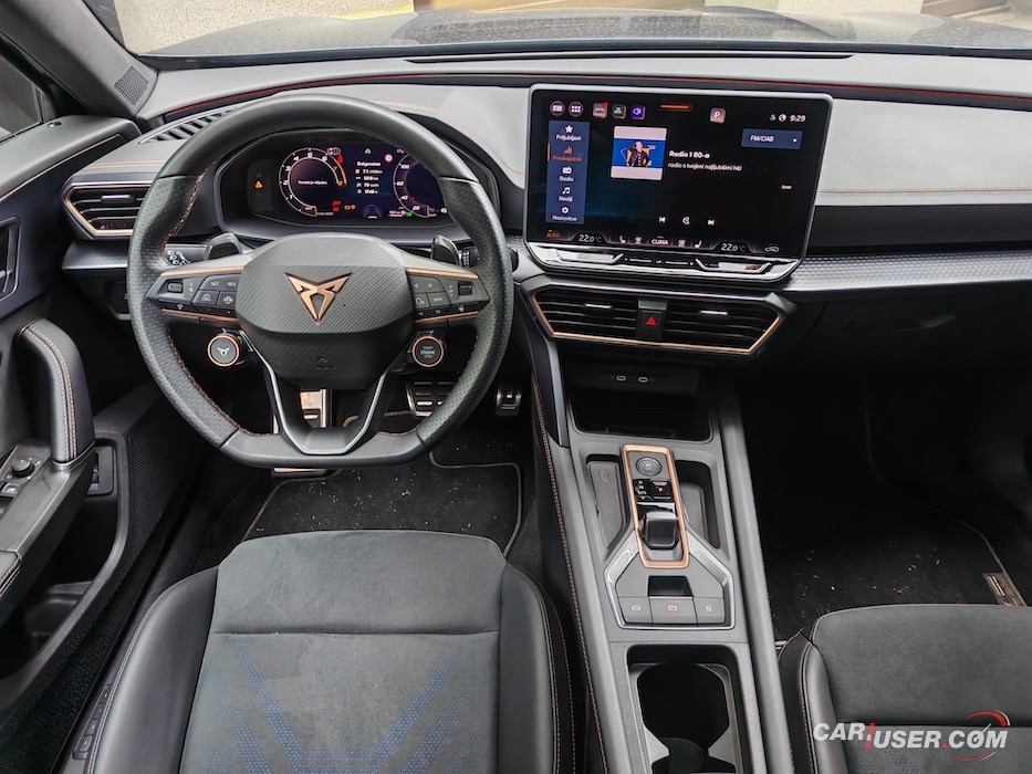 Zdaj pa končno preidimo k bistvu – cestnemu bontonu. Tokratni testnež je na druženje zapeljal z osnovnim 1,5-litrskim eTSI blago-hibridnim srcem, ki zmore 150 KM. Agregat poznamo, tokrat smo mu za vrat obesili še nekaj malega elektrike, ki vlije nekaj pelina v Formentorjevo razigranost. Elektrika omogoča nekaj vmesnih hipcev vožnje brez delovanja motorja, podaljša jadranje proti redeči luči na semaforju, a često poskrbi, da je elektro-oktanska simbioza malce v dvomih glede glavne besede – to rezultira z občasnim cukanjem, ko pogon preklaplja med delovanjem enega ali drugega vira navora. Diametralno skozi voznikovo senzoriko pa se podamo ob delovanju in zmogljivosti agregata samega. Ta je glede na svoj volumen in konjenico dobro odziven, omogoča tudi nekaj hitrih zavojev, kjer mini dodaten potisk prispeva že omenjena elektrika. Podvozje je Cuprino čvrsto, školjkasti športni sedeži udobni in brez možnosti lahkega pobega zadnjic prve vrste, 19-palčna platišča pa z dovolj širokimi pnevmatikami, da voz omogoča bistveno več igranja, kot ga pogon pravzaprav premore. Cupra ima odgovor tudi na to, saj je eTSI zgolj vstopnica v njihov svet, a po drugi strani vsi ljubitelji bencinskih hlapov ne iščejo tudi dejansko zmogljiv voz, temveč predvsem dinamično začinjen in praktičen ter sodobno oblikovan avtomobil.