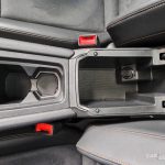 Zgodba z bakreno barvo ne razvodeni temveč se nadaljuje tudi, ko odprete vrata. Znana VAG-ova zasnova oziroma postavitev stikal in ekranov z 12,9-palčnim osrednjim ter pokončno postavljenim, vse skupaj oplemeniteno z značilnim barvnim odtenkom, znotraj volanskega obroča pa vas v slogu športnih imen iz sveta avtomobilizma pričaka da dodatna gumba. Prvemu so zaupali zagon oziroma izklop vozila, drugemu pa bližnjico za vključitev športnega Cupra načina delovanja celotnega pogona. Všečno. Enako velja za volanske tipke, obvolanske ročice in menjalnik na osrednji konzoli. Postavitev, ki jo paradni modeli VAG-ovih znamk opuščajo, je v praksi bolj priročna kot nova, prečiščena podoba z ročico menjalnika na desni strani za volanom. Glede prostornosti in priročnosti ne velja dolgoveziti. Formentor bo z veseljem sprejel štiričlansko družino, tudi z vikend prtljago, za sezonske migracije na jadransko obalo oziroma zasnežene strmine pa boste morali k osnovnemu 450-litrskemu nahrbtniku dodati še strešni kovček.
