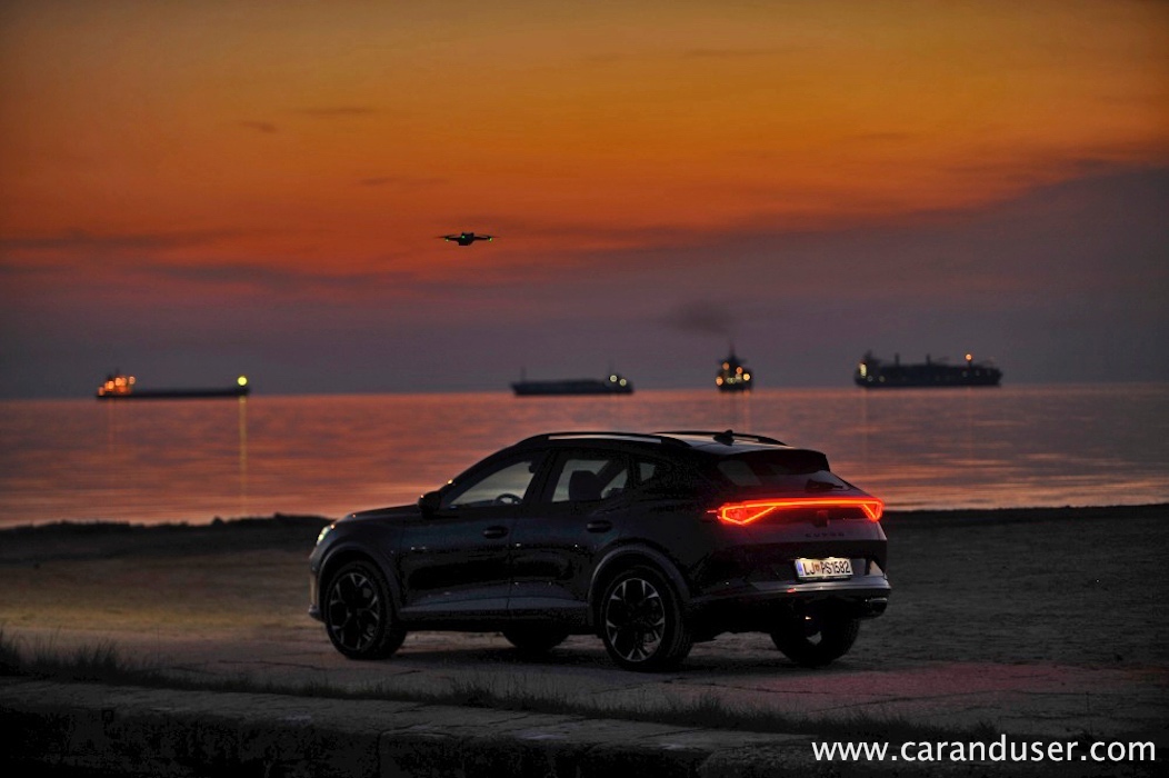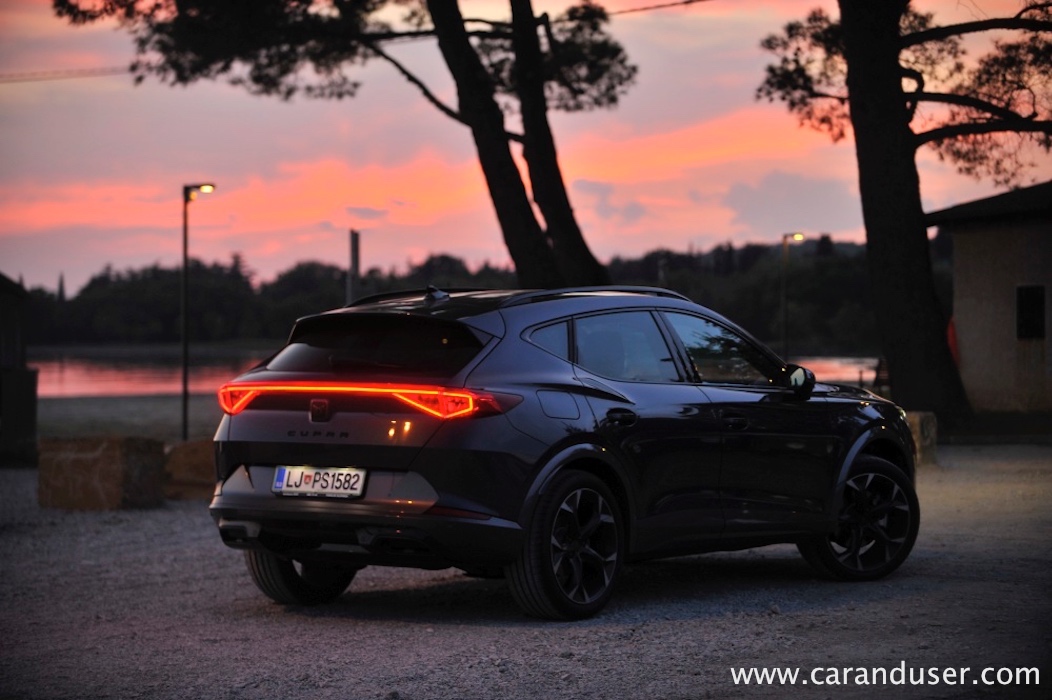 Formentor je izrazito dinamično oblikovan SUV in nemudoma pritegne pozornost okolice. Nekakšna mikro kupejevska linija z nekaj več oddaljenosti od tal in poudarjenimi boki je očitno tisto, kar kupci iščejo. Piko na i postavijo dvobarvna 19-palčna obuvala, ki dopolnijo celotno zunanjost Formentorja, ob mraku pa mimoidoče nagovarja tudi z zanimivim svetlobnim podpisom. Skratka, atraktivna štirikolesna reč po meri avtomobilskih modnih navdušencev.