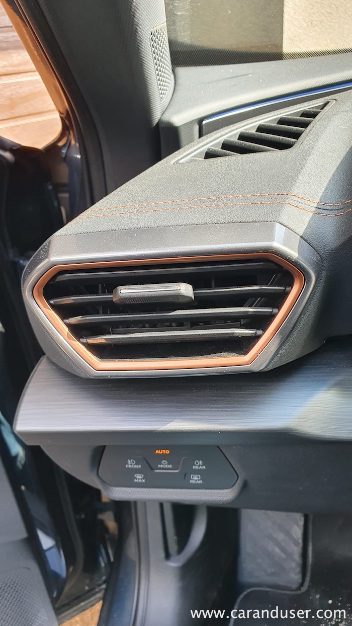 V podobnem slogu se nadaljuje ob vstopu v Formentorjev ambient. Tam celotno športno črnino in digitalizacijo nadgradijo elementi v bakreni kovinski barvi. Od šivov oblazinjenja pa vse do obrob zračnikov in dekorativnih elementov na volanu, vse povezano z emblemom znamke v enakem barvnem odtenku. Zdi se, da so se Španci zares potrudili in kupcem ponudili dovoljšno mero natančnosti, kakovosti in pozornosti, da je Formentor zanimiv širši množici. Glede upravljanja gre za VAG-ovo sodobno klasiko, kjer se čedalje več funkcij upravlja posredno – torej preko osrednjega zaslona. Nasploh je notranjost pregledna, odlikujejo jo pametno postavljena odlagalna mesta in tudi dovolj prostorna tudi za manjše družine. Udobje? Štirje odrasli bi morali daljše poti preživeti brez obiska kiropraktika na cilju.