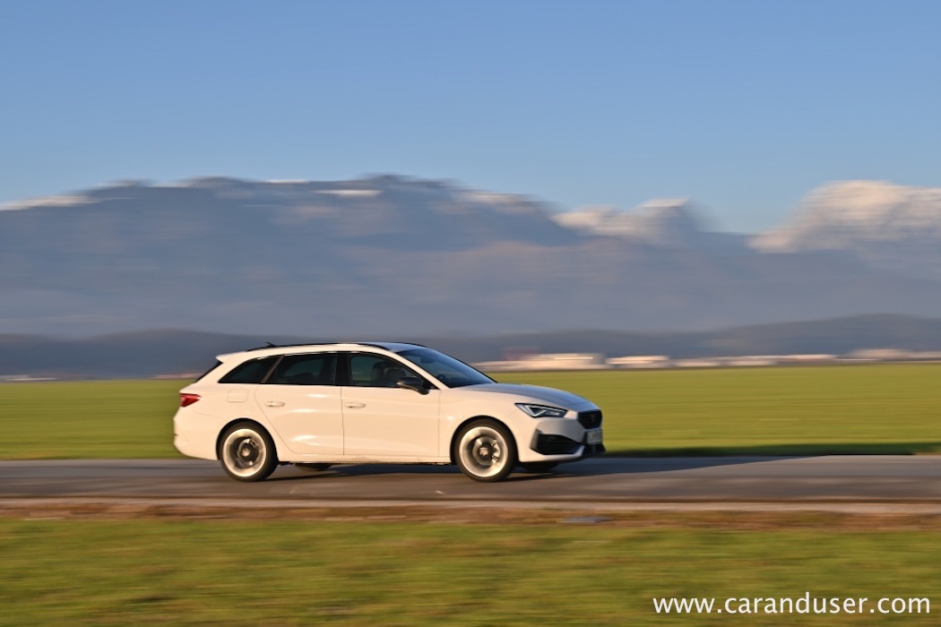 Kaj poreči drugače, če imate v naboru vozil karavana, ponudba pa se prične pri 1,5-litrskem eTSI-ju z 48-voltnim blago hibridnim dodatkom, ki zmore 150 KM. Slednji seveda ni raketa, a je vseeno več kot odlična izbira, če je postavljen pogoj, precej ugoden avtomobil, z veliko prostora, ki hkrati ni prevelik. Po drugi strani verjetno poznate pravni jezik, ki vas lovi na vejice ter na in/ali. V tem primeru se lahko pri Cupri Leon SP ozrete tudi proti 300 KM, če vam bodo postavljene omejitve, ki ne bodo dovolj natančno specificirane. Sam sem med vožnjo večkrat obremenil možgan in hitel iskati razloge, zakaj bi človek sploh potreboval kaj več od našega testnega primerka. Zelo konkretno pospešuje, končna hitrost je več kot solidna, tistim, ki si dajo duška skozi ovinke, pa bo Cupra Leon tudi narisal nasmešek na obraz.