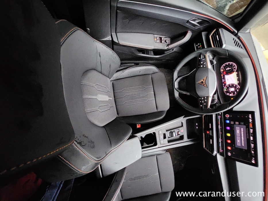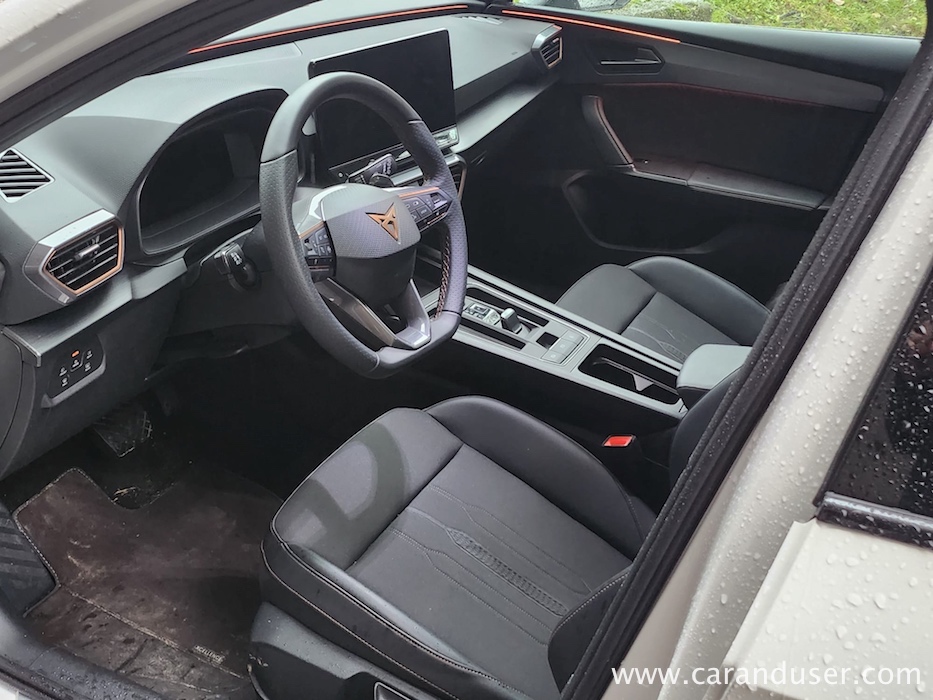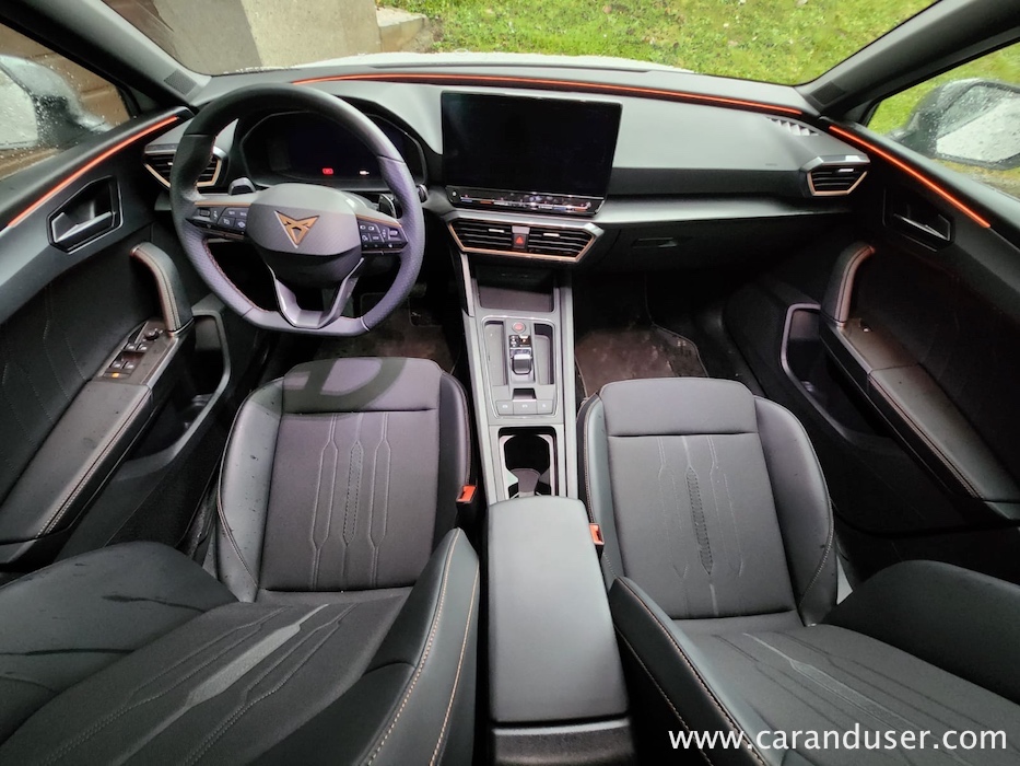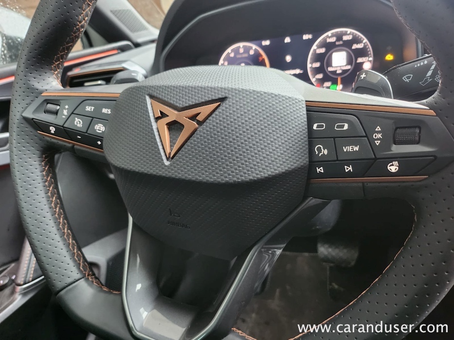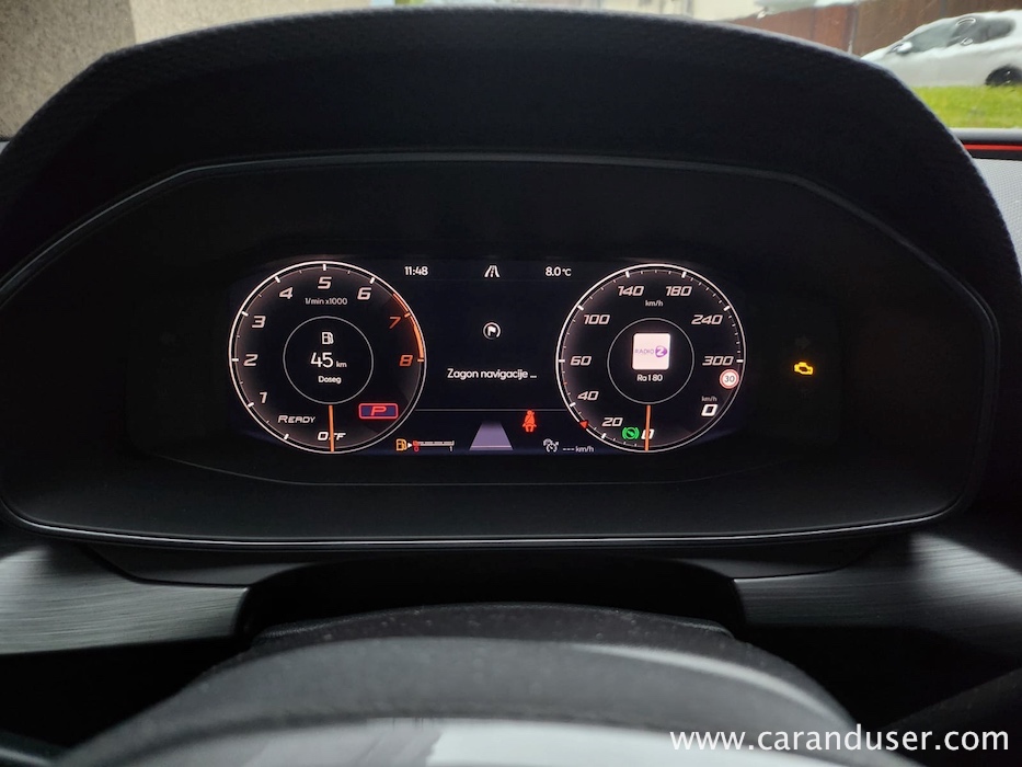 Kaj pa esenca, ki pritiče takšni karoserijski zasnovi? Hja, dvomim, da boste lahko naleteli na upravičene komentarje, zakaj Cupro ne bi smeli pripeljati domov. Prtljažnega prostora je namreč za več kot spodobnih 620 litrov, s podiranjem zadnje klopi pa ga lahko povečate na poldrugi kubik prostora. Nasploh je Cupra Leon eden zadnji vrste, ki kljubuje (večini) sodobnim smernicam. Stikala na volanu so še vedno fizična, všečna in predvsem pregledna. Nekaj sodobnosti se je prikradlo v območje klimatske naprave, ki jo upravljate s stikali ubčutljivimi na dotik. No, digitalizacija je dosegla tudi merilnike hitrosti, ki ji ne gre kaj dosti očitati, še najmanj preglednosti in predvsem različnih načinov – od možnosti pogleda navigacije, digatalnih merilnikov, analognih merilnikov …