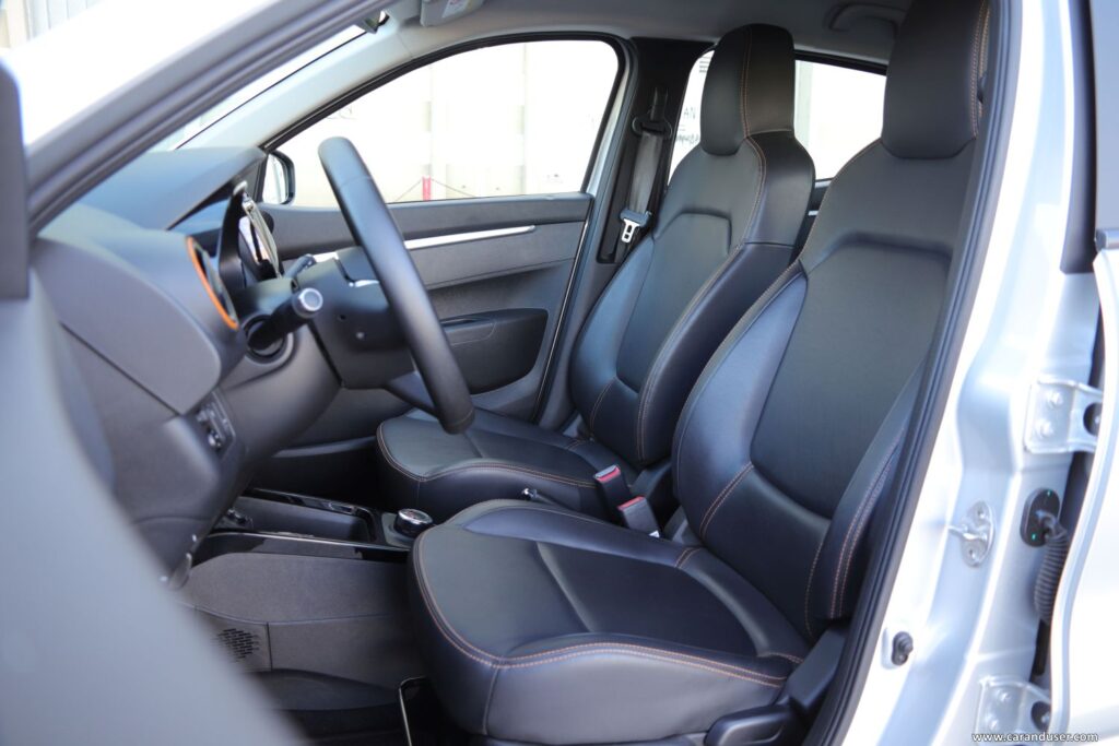 Vključeno je vse kar dejansko potrebujemo, manjkajo le določeni vozni in varnostni pripomočki, ki bi posledično občutno dvignili dostopno ceno, ima namreč le samodejno zaviranje v sili. V kabini zmotita samo dve zadevi. Položaja volana ni mogoče prilagajati, ker zna predstavljati nelagodje majhnim ali visoko rastočim, druga šibka točka je vrtljiv izbirnik smeri vožnje, ki otežuje hitro pretikanje med manevriranjem in nima parkirne pozicije P. Ob ustavitvi je tako potrebno prestavit v N in zategnit ročno zavoro – enostavna, vendar ne najbolj praktična rešitev. Tega ne moremo pripisati prtljažnem prostoru z radodarnih 290 litrov prostornine, kar ob zloženi klopi zraste na 1.100 litrov.